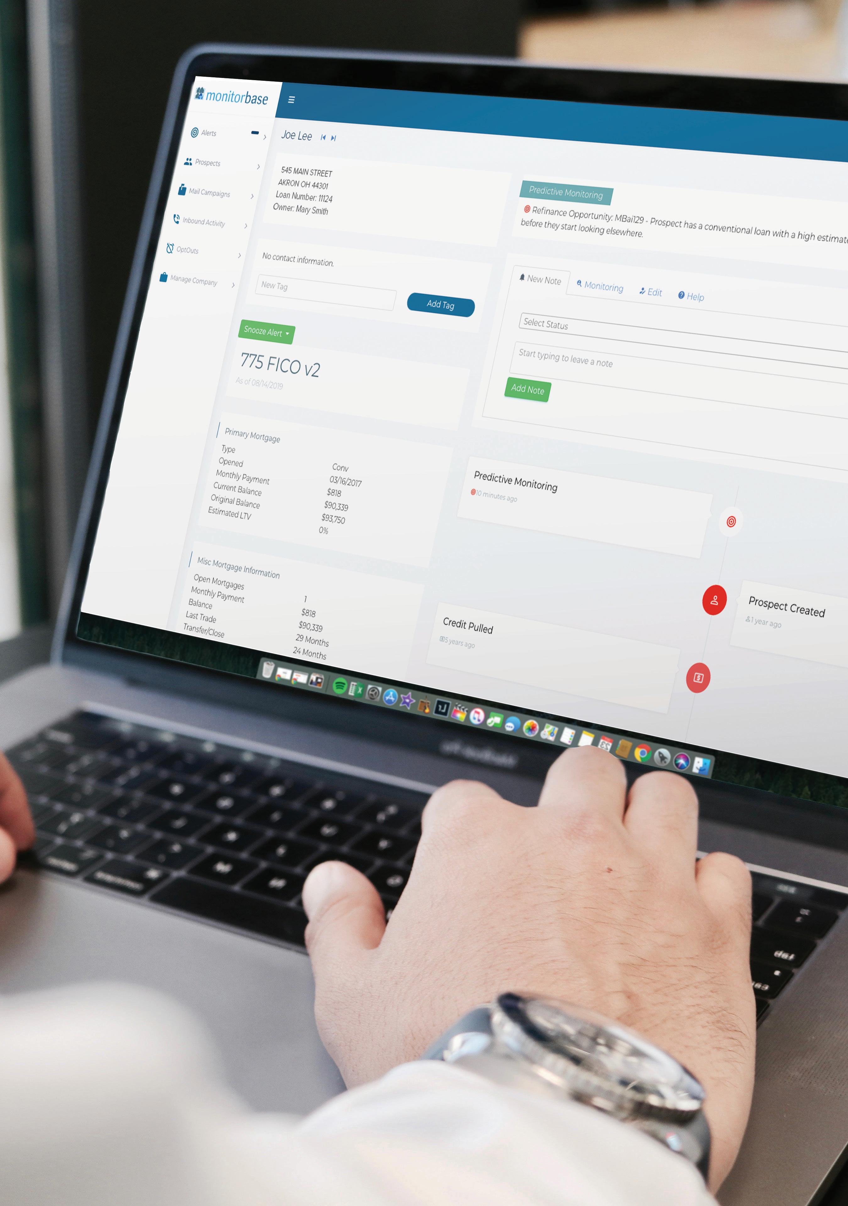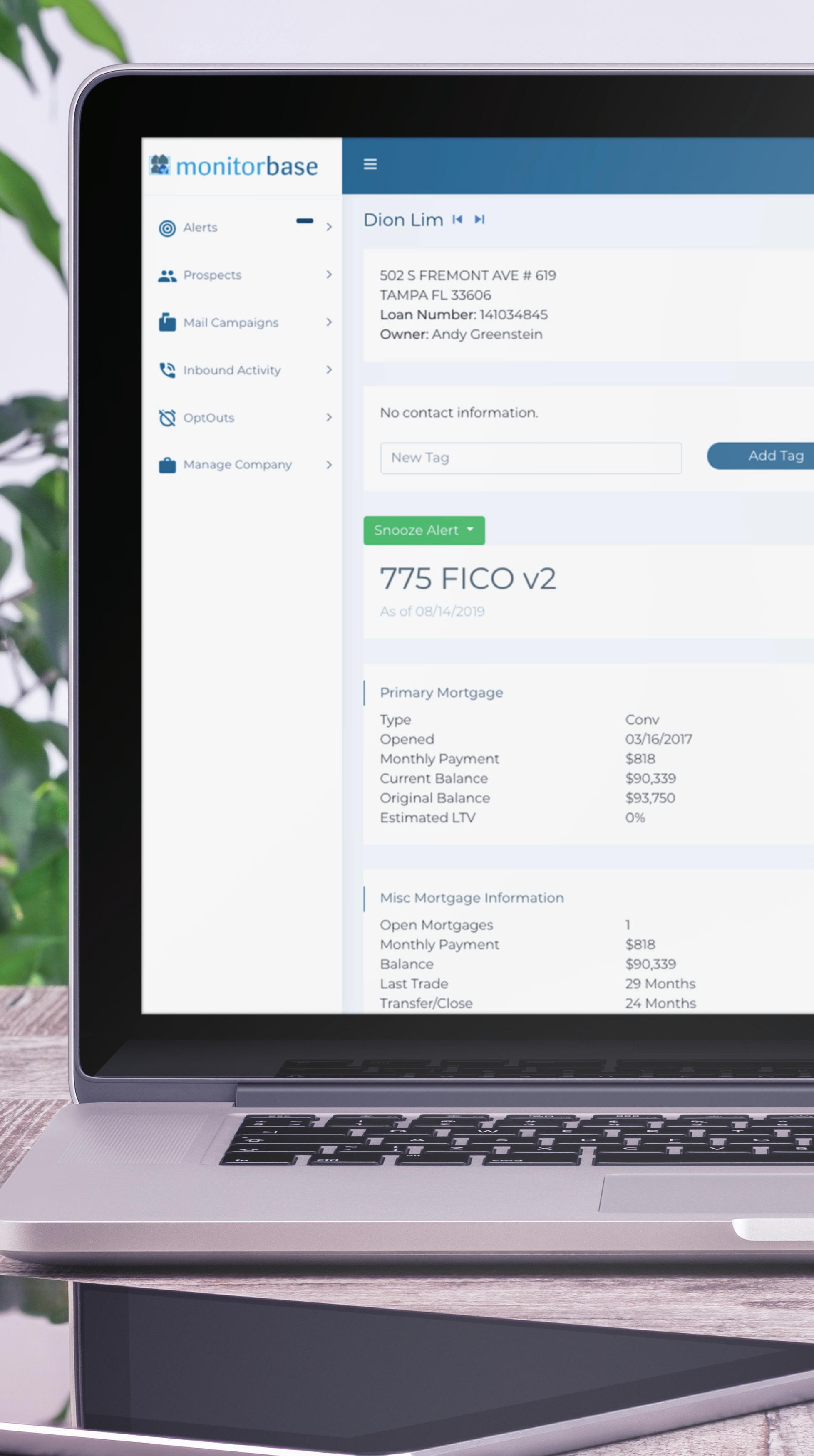 Macaw appraisal waiver eligibility requirements vary by investor and state and may be subject to additional restrictions. Subject property must not have or be required to obtain an appraisal by law. Cash-out refinance’s, property values over $1M, manufactured homes, coops and others are not eligible for approval. Please contact your Guaranteed Rate Loan Officer for full list of ineligible loan types. Applicant subject to credit and underwriting approval. Not all properties will be approved for Macaw appraisal waiver. Not all applicants will be approved for financing. Contact Guaranteed Rate for more information and current rates. Any finding provided through API is a preliminary finding. Final appraisal waiver eligibility shall be provided once a mortgage application is submitted to a Loan Product Advisor. + No closed loan, SSN or other PII required—just a name, address and phone or email Four Alert Types: 1. Credit Pull 2. MLS Status 3. Predictive Analytics 4. FICO Improvement MonitorBase Our unique tech monitors customers’ credit for highly actionable trigger leads.