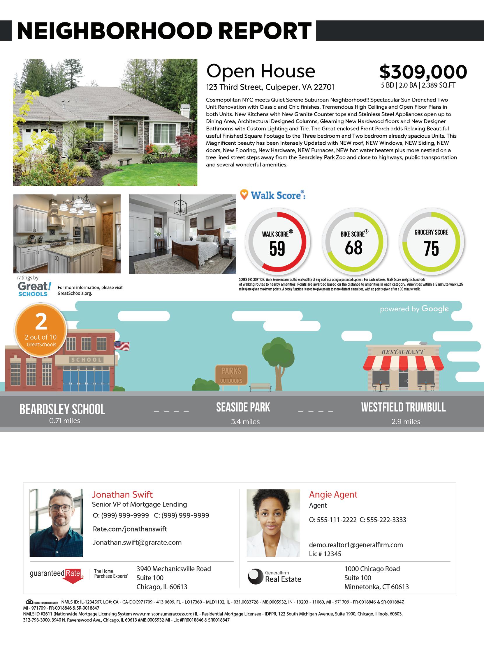 Macaw appraisal waiver eligibility requirements vary by investor and state and may be subject to additional restrictions. Subject property must not have or be required to obtain an appraisal by law. Cash-out refinance’s, property values over $1M, manufactured homes, coops and others are not eligible for approval. Please contact your Guaranteed Rate Loan Officer for full list of ineligible loan types. Applicant subject to credit and underwriting approval. Not all properties will be approved for Macaw appraisal waiver. Not all applicants will be approved for financing. Contact Guaranteed Rate for more information and current rates. Any finding provided through API is a preliminary finding. Final appraisal waiver eligibility shall be provided once a mortgage application is submitted to a Loan Product Advisor. + Our independent editorial team writes personal finance articles that are published daily and syndicated in local and national newspapers • Improve the search results for your local branch and website • Real estate agents can share the articles via email or social media + Real Estate Market Data by ZIP code • Median home price, days on market and average price per square foot • For-sale inventory and maps • Neighborhood ratings, walkability scores and crime stats GR Research Provide your customers access to unique insights and useful ZIP code data.