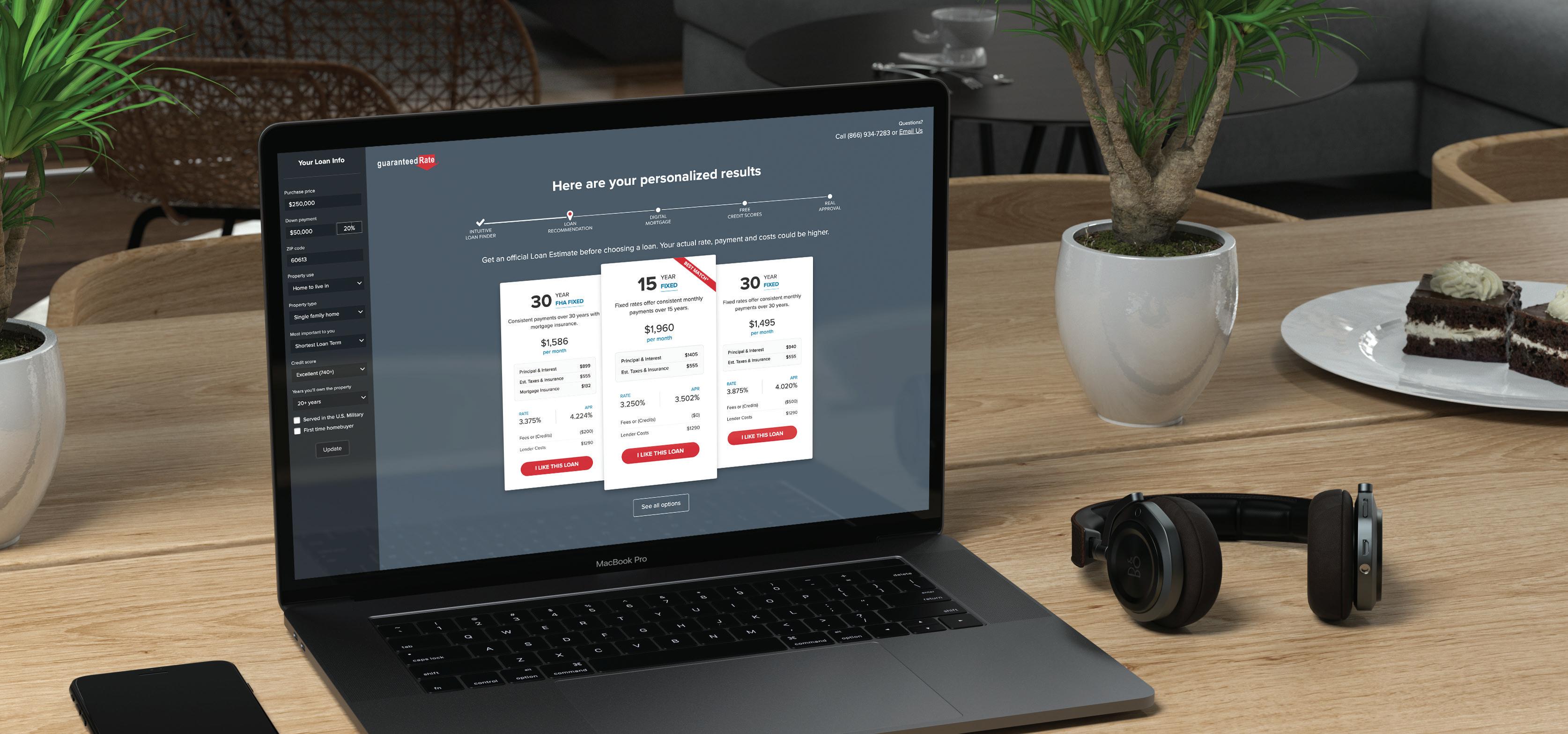 Macaw appraisal waiver eligibility requirements vary by investor and state and may be subject to additional restrictions. Subject property must not have or be required to obtain an appraisal by law. Cash-out refinance’s, property values over $1M, manufactured homes, coops and others are not eligible for approval. Please contact your Guaranteed Rate Loan Officer for full list of ineligible loan types. Applicant subject to credit and underwriting approval. Not all properties will be approved for Macaw appraisal waiver. Not all applicants will be approved for financing. Contact Guaranteed Rate for more information and current rates. Any finding provided through API is a preliminary finding. Final appraisal waiver eligibility shall be provided once a mortgage application is submitted to a Loan Product Advisor. + Customers can easily determine how much they can comfortably afford based on real loan programs and real-time rates + Accessible online 24/7 with no personal information or login required + Available for Conventional, Jumbo, FHA and VA + Custom sorting options allow borrowers to see what’s most important to them: • Lowest monthly payment • Shortest term • Lowest rate + Smoothly transitions into a loan application with the click of a button GRaffordable The BEST mortgage calculator on the planet. Guaranteed Rate, Inc. is a private corporation organized under the laws of the State of Delaware. It has no affiliation with the US Department of Housing and Urban Development, the US Department of Veterans Affairs, the US Department of Agriculture or any other government agency. Sample rate provided for illustration purposes only and is not intended to provide mortgage or other financial advice specific to the circumstances of any individual and should not be relied upon in that regard.