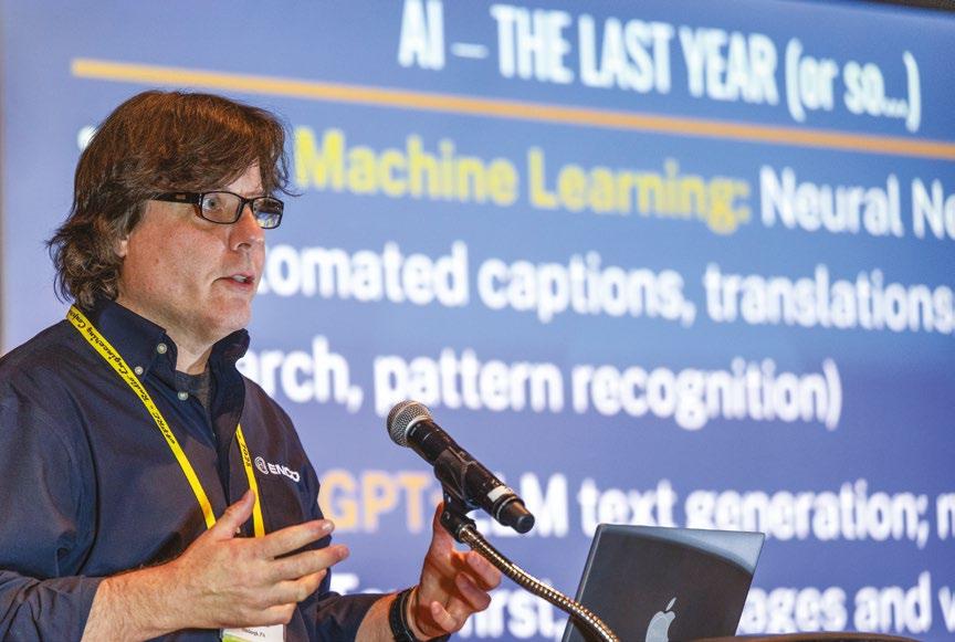Bill Bennett of ENCO updates PREC attendees on the progress of AI-based tools.