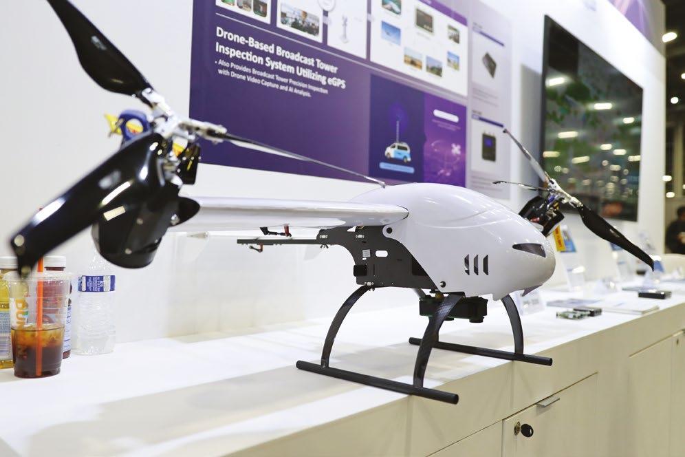 Drone-based broadcast tower inspection system using eGPS, on display in the Korea Pavilion.