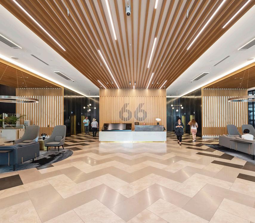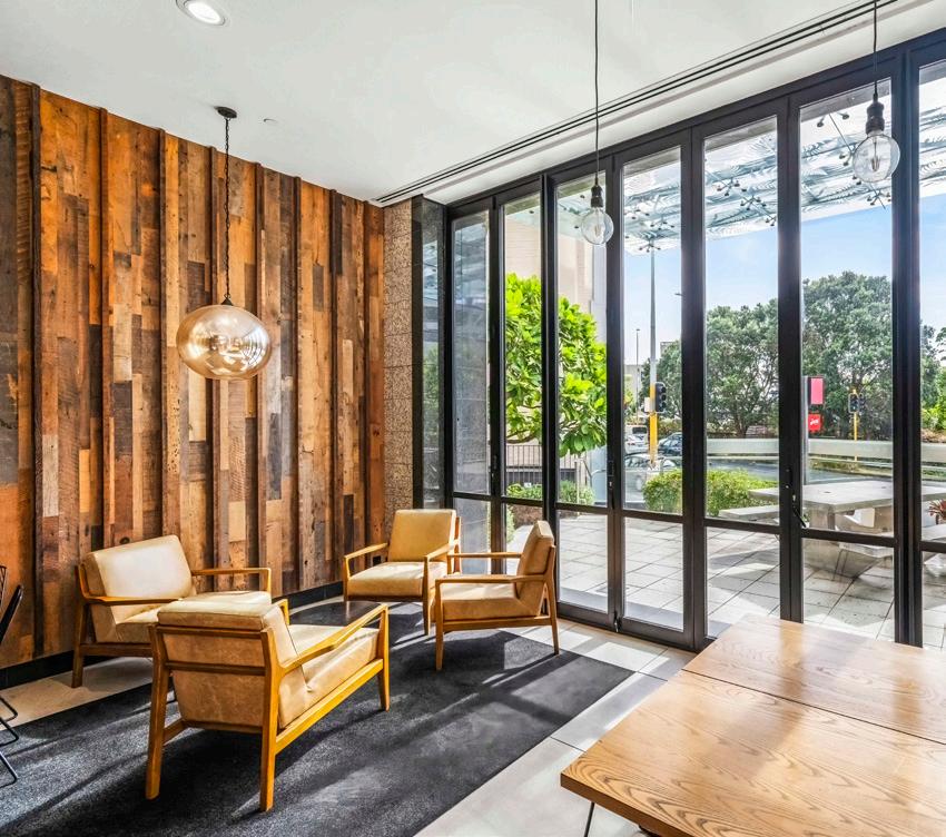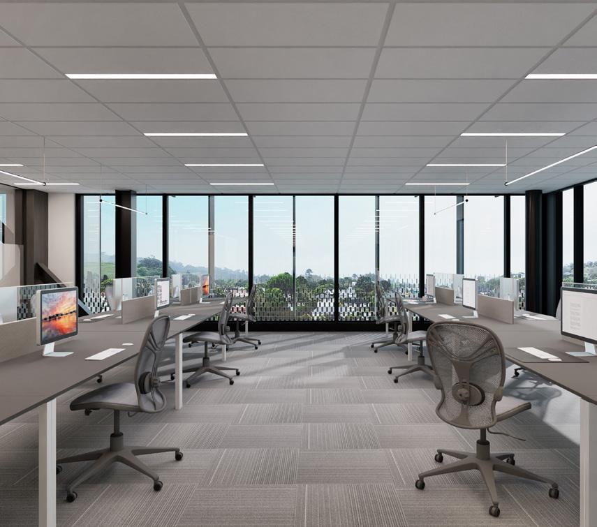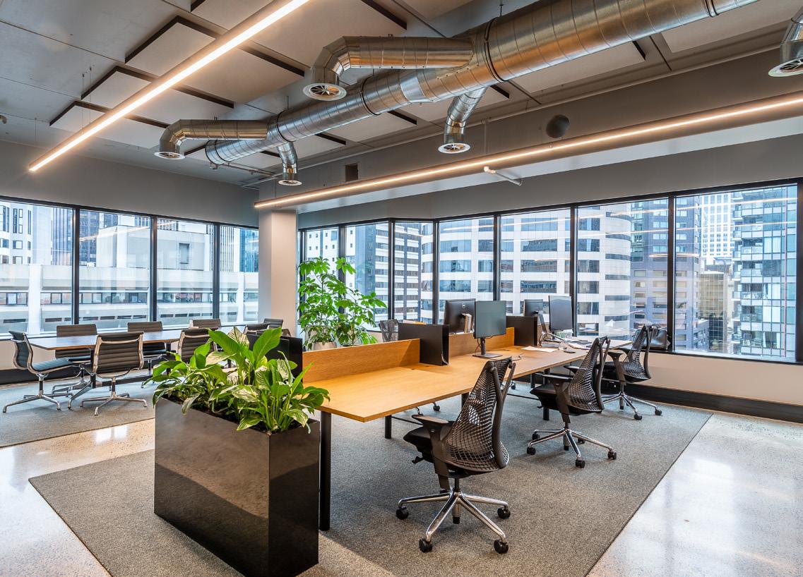 The space o ers wide board oak floors, 4.2 metre stud height, and premium quality bathrooms. Fitout and design packages are available from award-winning Izzard design.