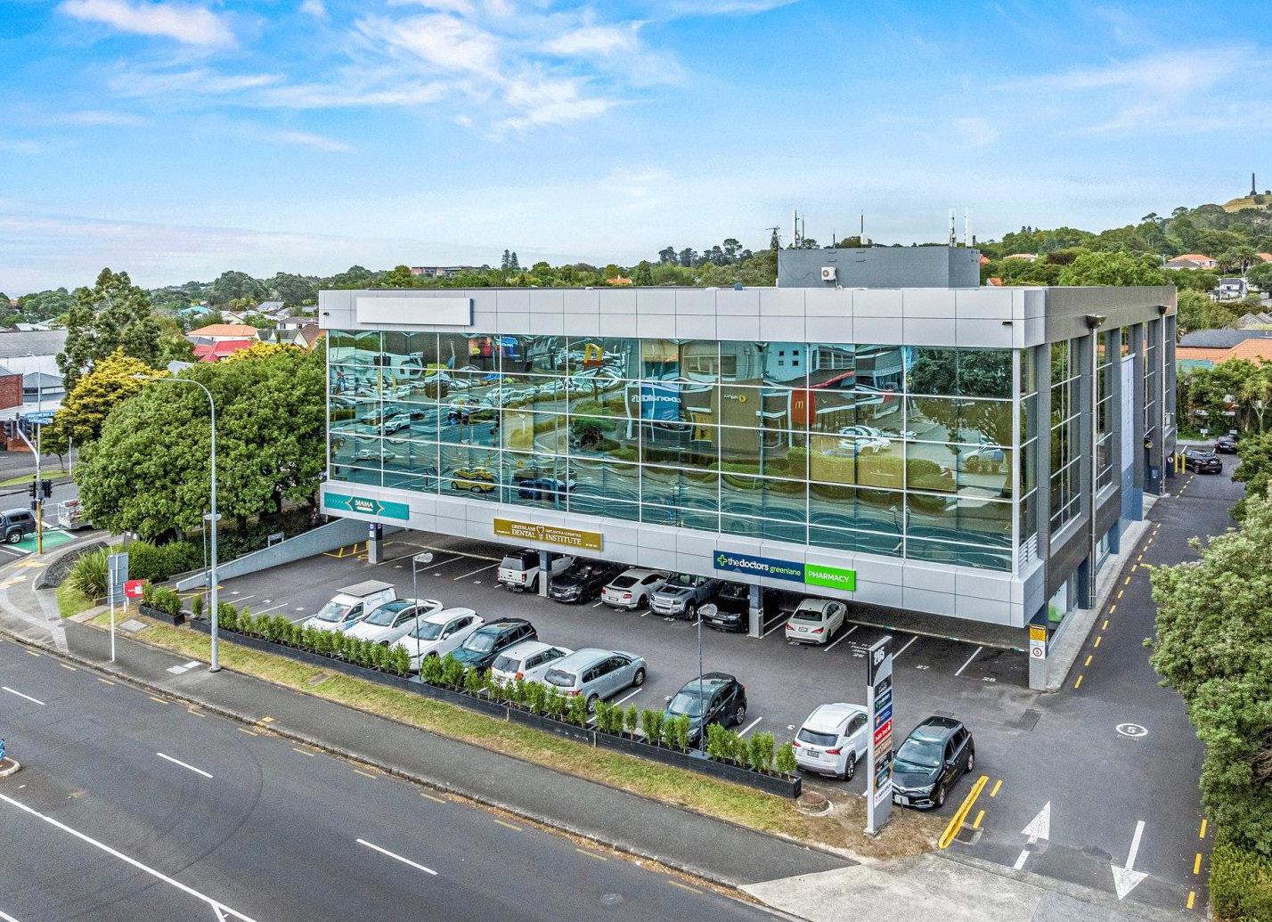 Located on the corner of Great South Road and Green Lane West in the Southern Corridor, this building o ers tenants a modern corporate space with good on-site parking, excellent accessibility to the Greenlane motorway interchange and public transport links within walking distance. Both levels have existing fitout and the tenancies on level three can be combined to make 1,227sqm. Naming rights are also available.
