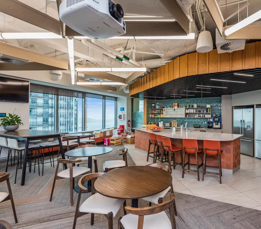 AI-powered workplace technology is increasingly focused on enhancing the employee experience by streamlining and personalising services. From personalised workspace recommendations to automated service requests, AI helps create a more seamless and intuitive environment for employees. AI-enabled solutions assist employees in finding available rooms, booking optimal workspaces and engaging with virtual assistants. Additionally, AI-driven tools can arrange services like catering or cleaning, while digital assistants and chatbots help employees navigate facilities, access resources and complete tasks more e iciently. These features reduce friction in the workplace, allowing employees to focus on their core responsibilities.