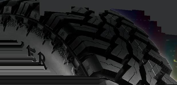 Series: 85 — 60 & Floatation Sizes: 22, 20, 18, 17, 16, 15 Load Ranges: C, D, E, F Speed Ratings: Q, R • Triple Threat 3-ply sidewall • 6 sizes available with Raised Red Lettering