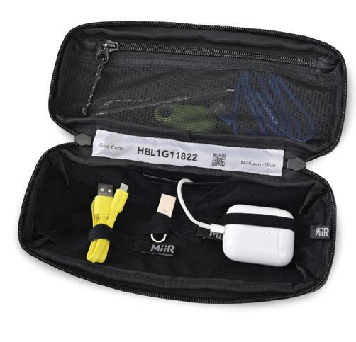 1. PORTABLE TECH LIGHT 2. POWDER COATED TUMBLER 3. SCREEN CLEANER 4. BACK SUPPORT PILLOW 5. RFID POUCH