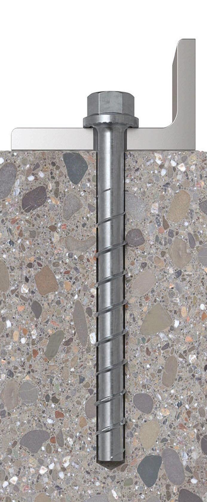 applications to be carried out with fewer fastening points. The FBS II’s flanks cut deep into the concrete as it is inserted to provide an optimum fit that ensures reliable force transfer, anchorages free of expansion, and low edge and axial spacing for simple and safe installation. Ribs under the screw’s head prevent it from unintentionally loosening.