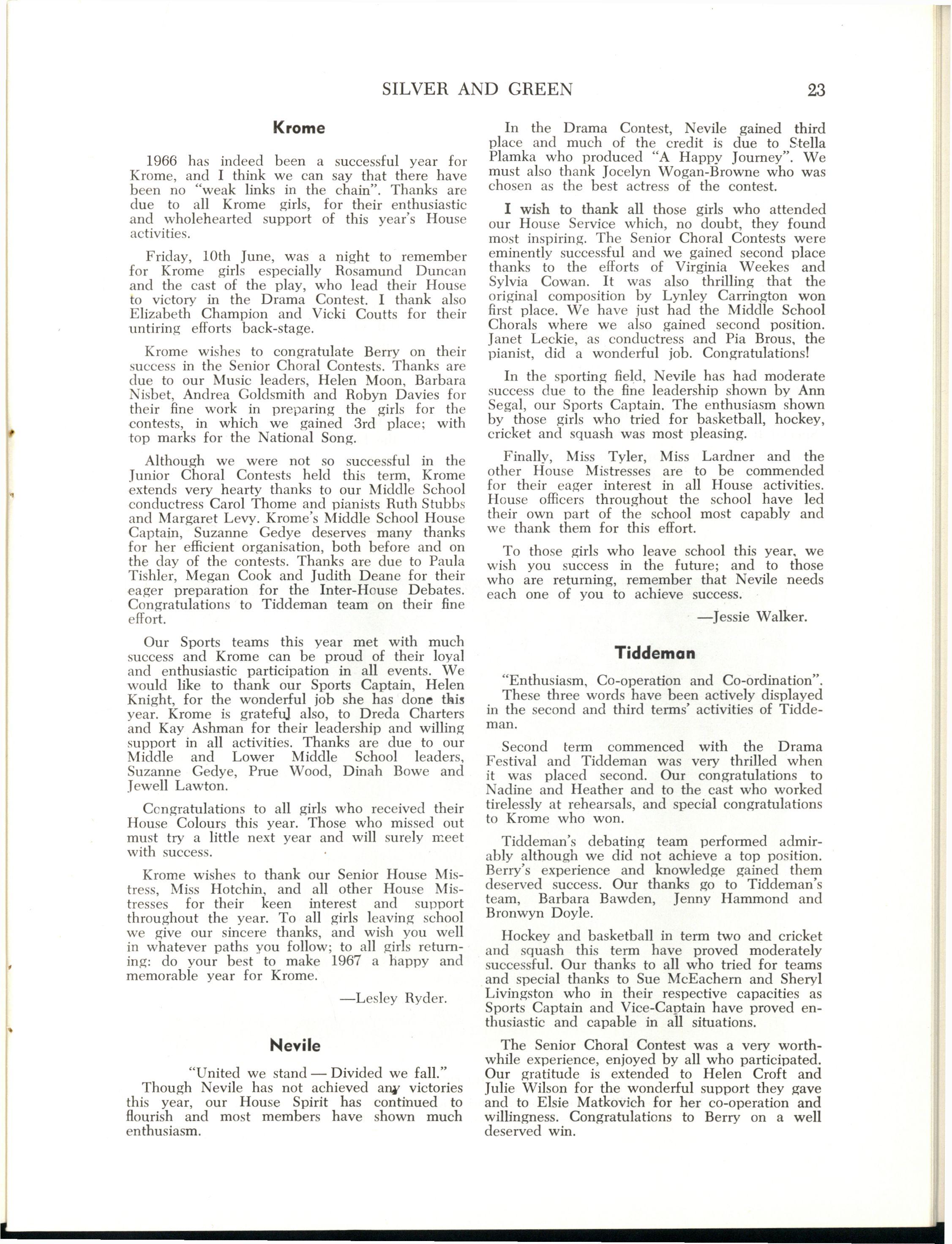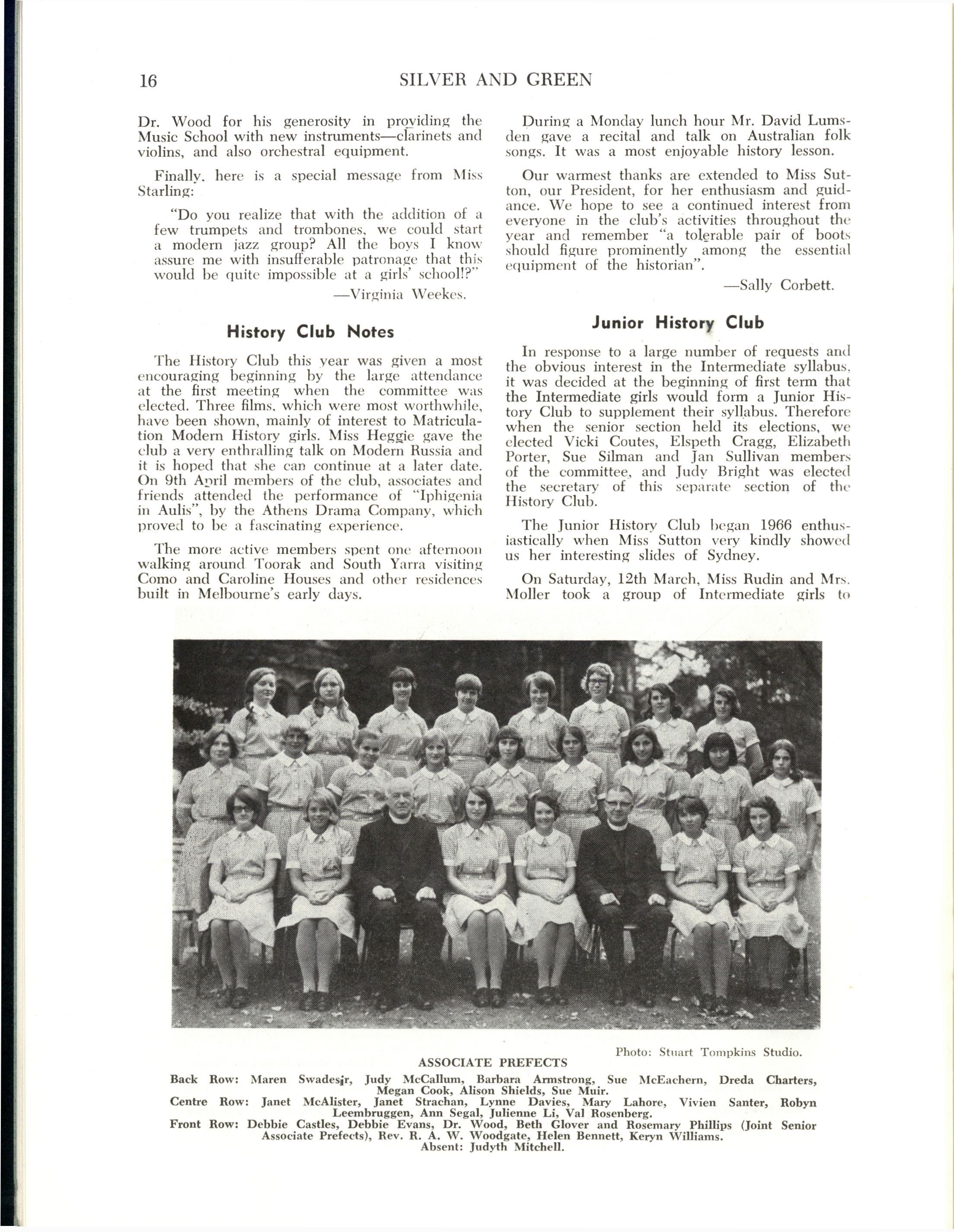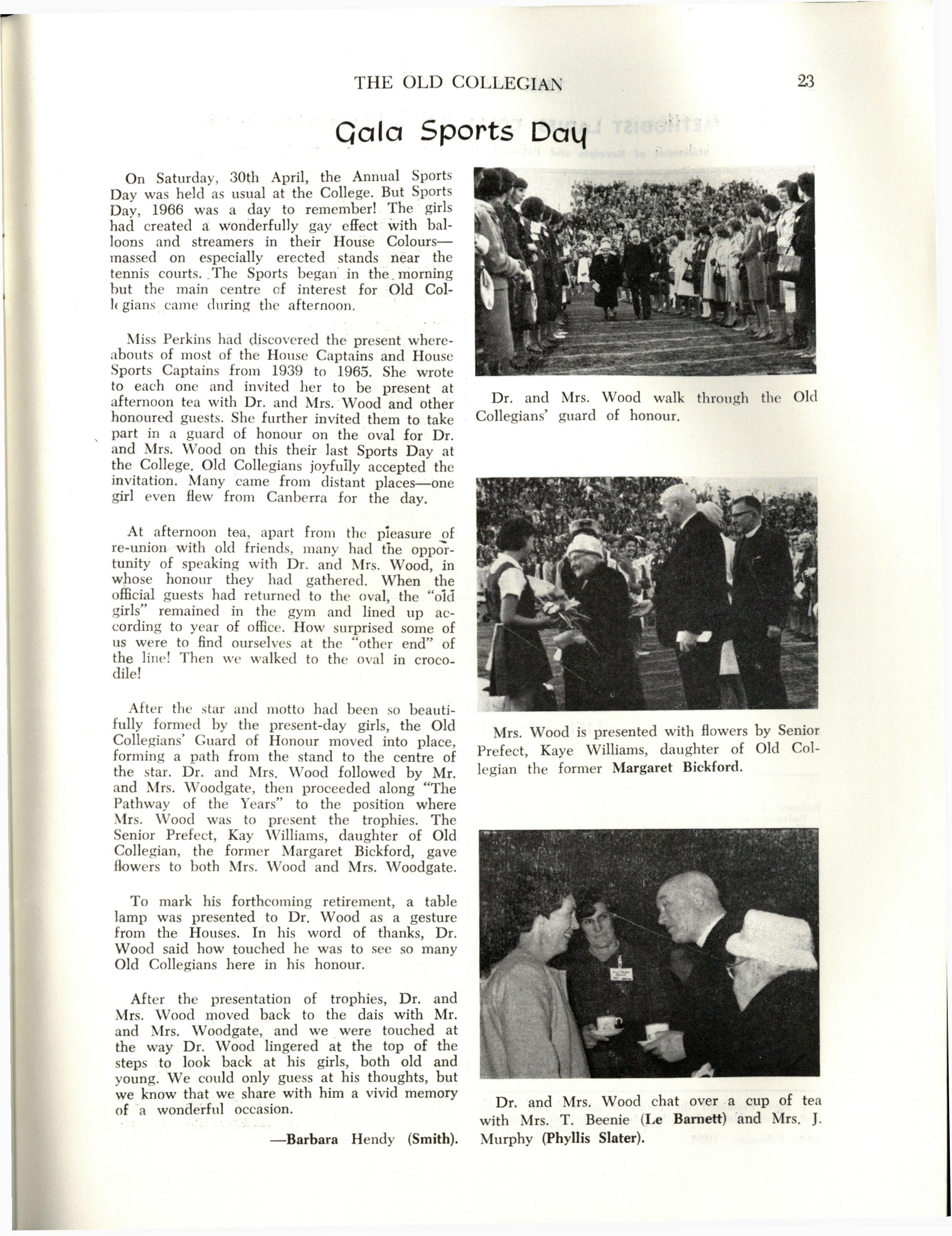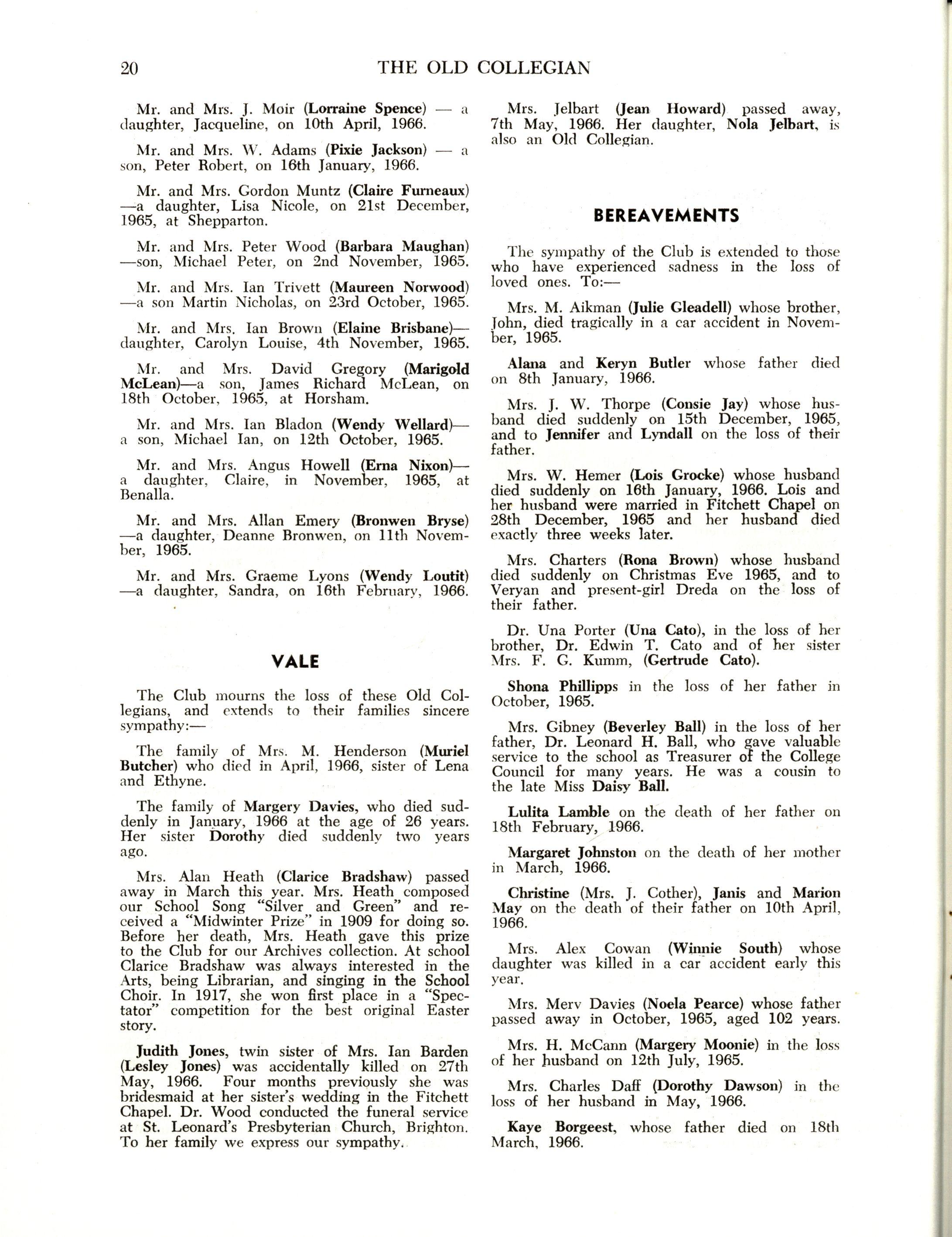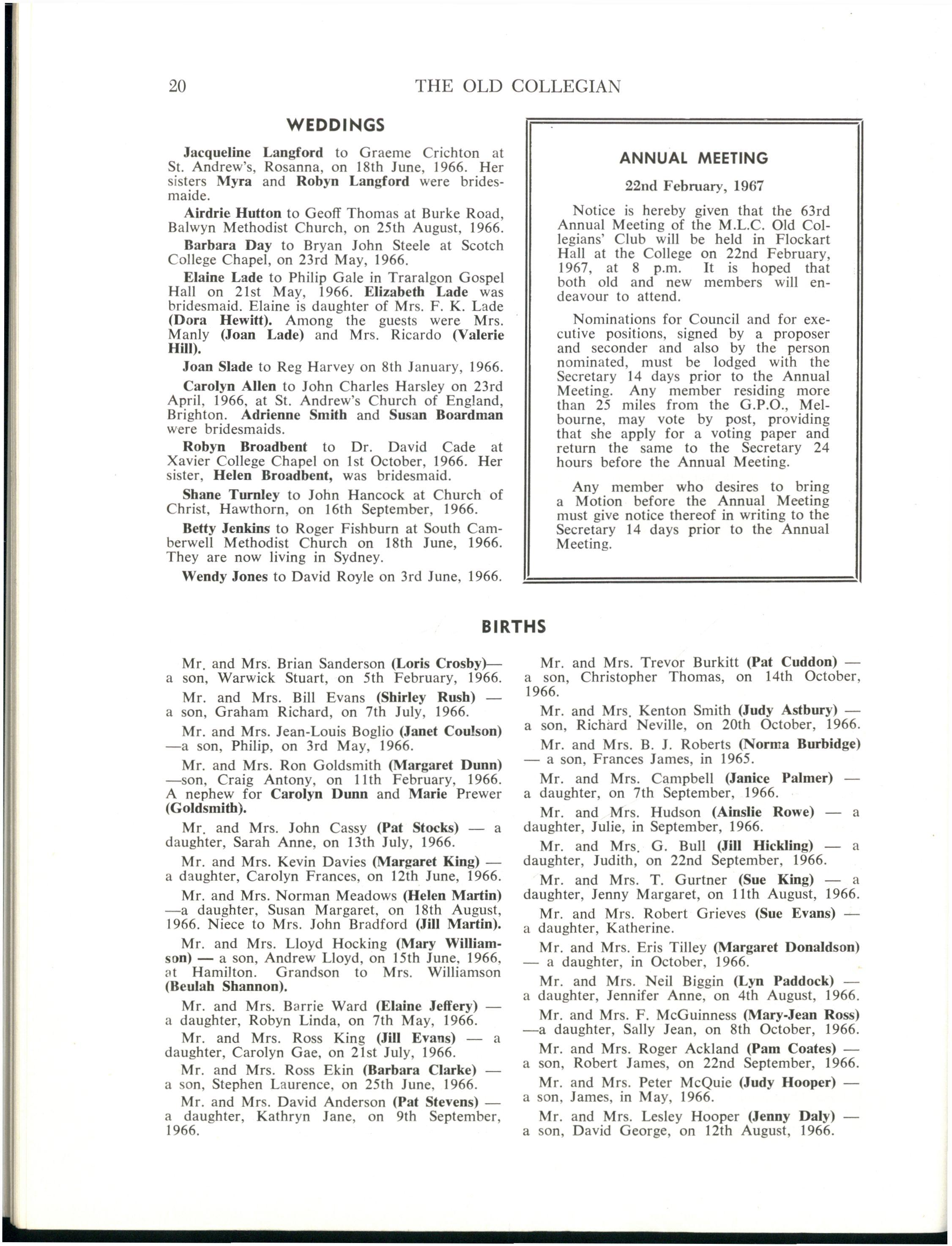 The Editress wishes to thank all those who have assisted in any way with the production of this Magazine Very special thanks are given to the President, Mrs. Lumley (Una Harrison), for her untiring assistance, to Mrs F Cornell (Edna Pryor), to Miss Margot Cant, to Miss Dorothy Nance and to Mrs J B Hewitt (Margaret Day) There are many who have contributed to this Magazine and we ask them to regard this as personal thanks