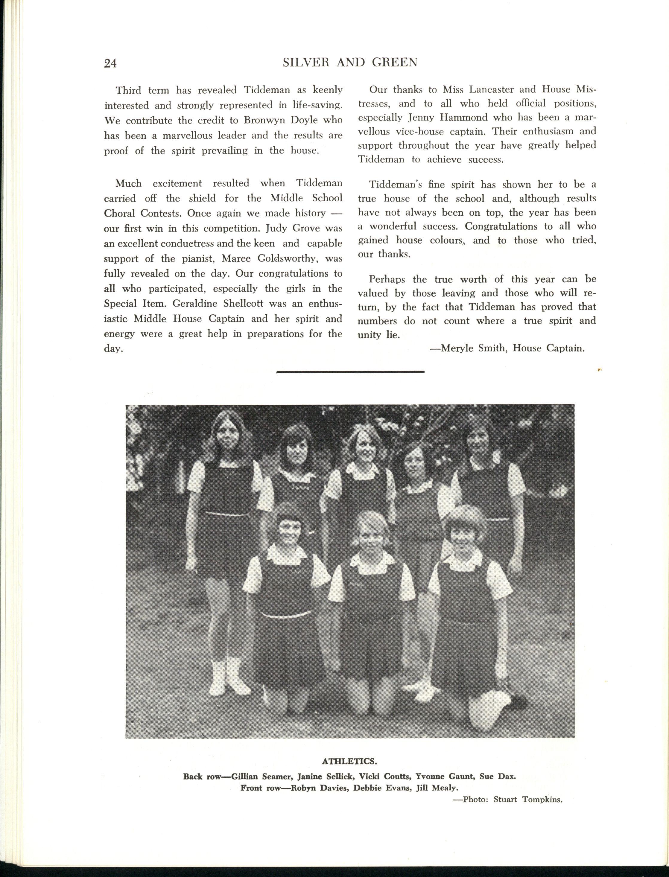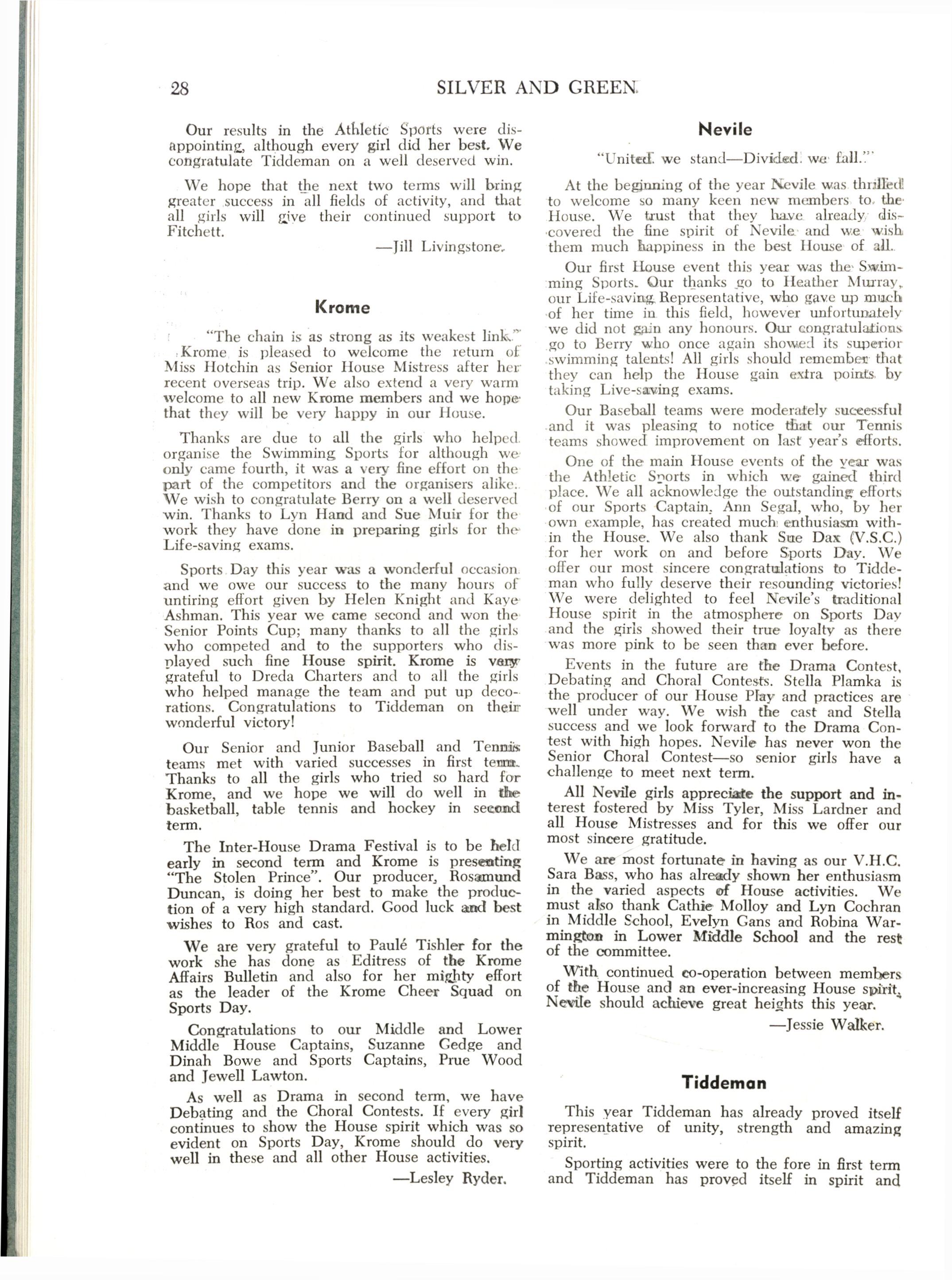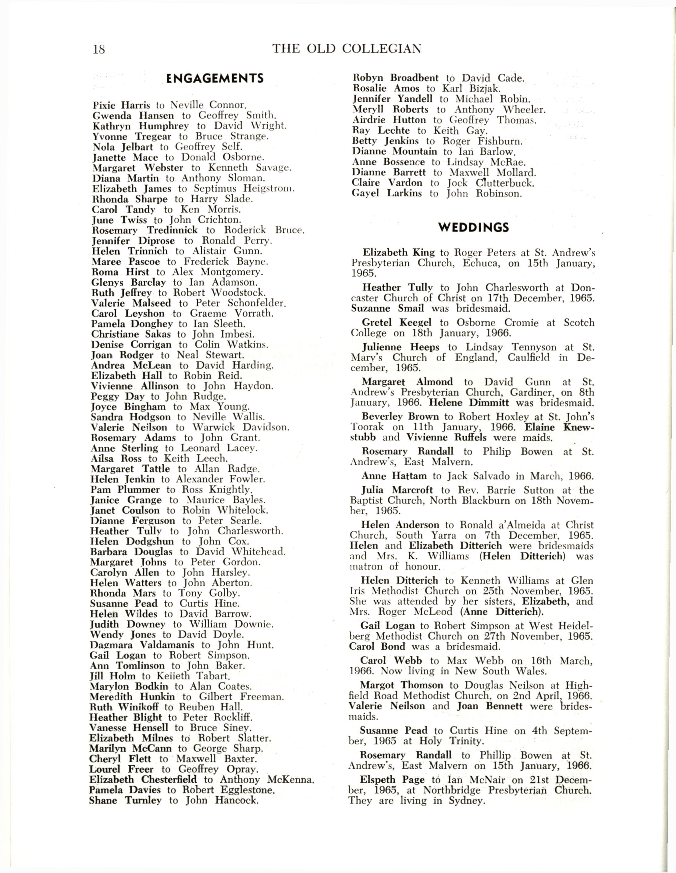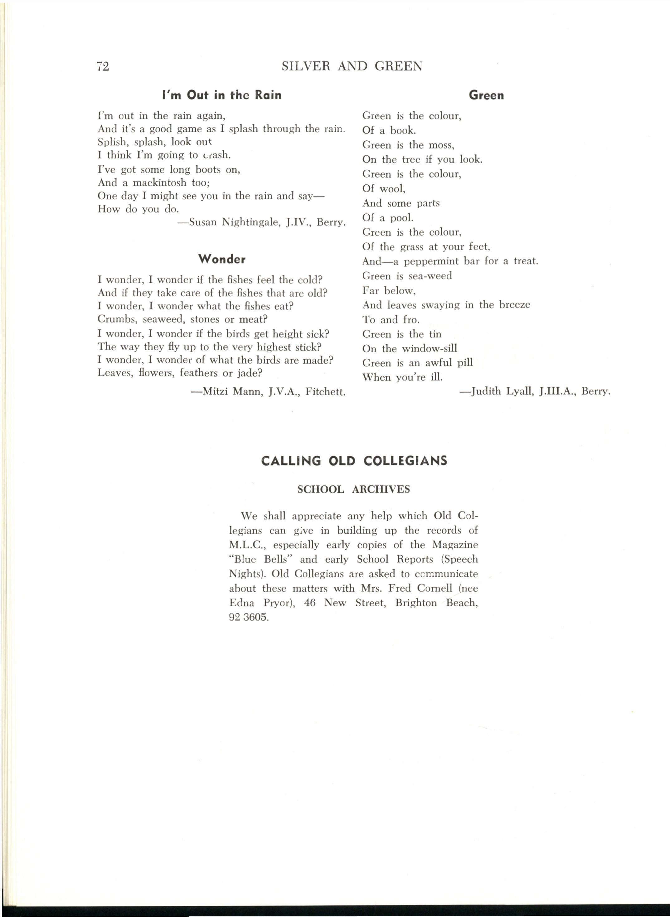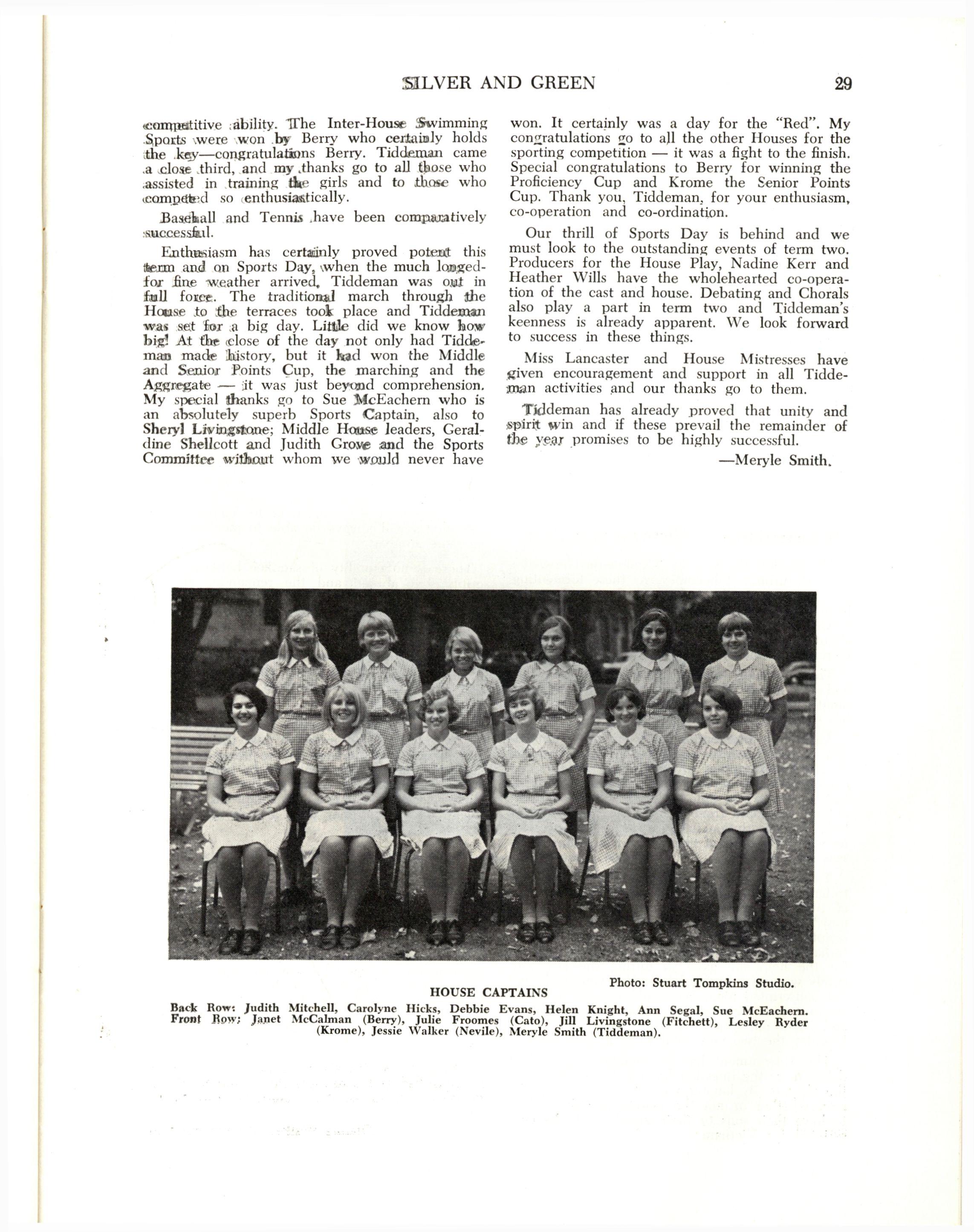 The Editress wishes to thank all those who have assisted in any way with the production of this Magazine Very special thanks are given to the President, Mrs. Lumley (Una Harrison), for her untiring assistance, to Mrs F Cornell (Edna Pryor), to Miss Margot Cant, to Miss Dorothy Nance and to Mrs J B Hewitt (Margaret Day) There are many who have contributed to this Magazine and we ask them to regard this as personal thanks