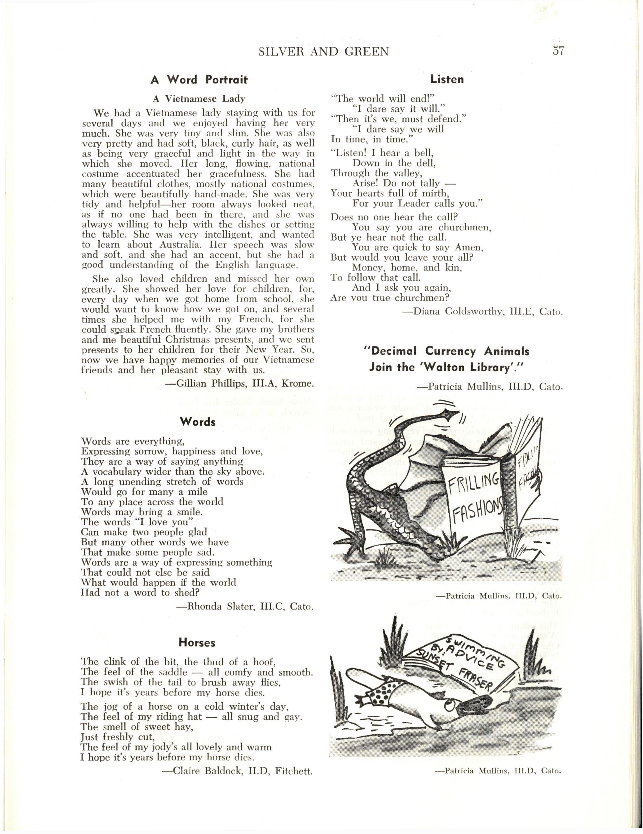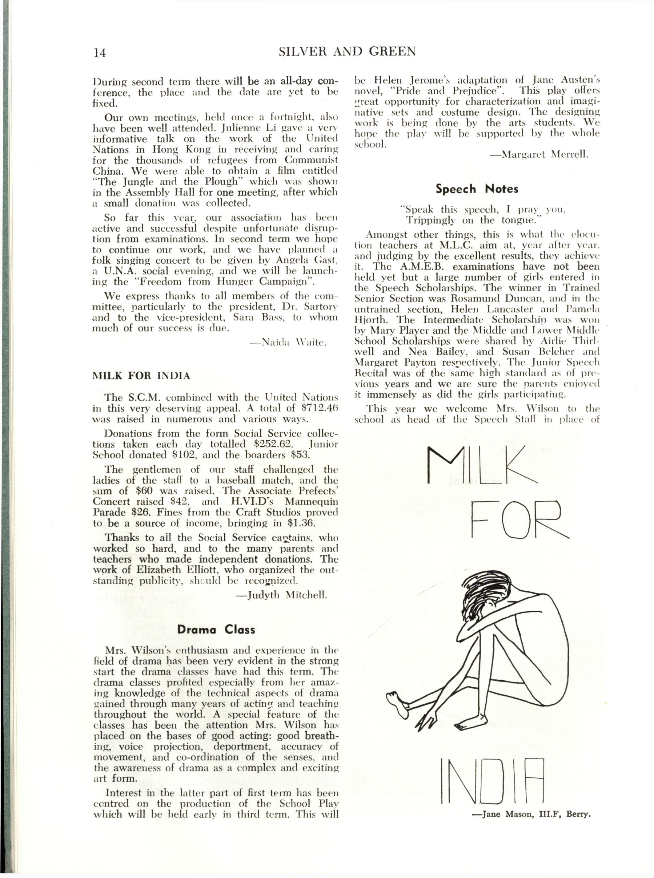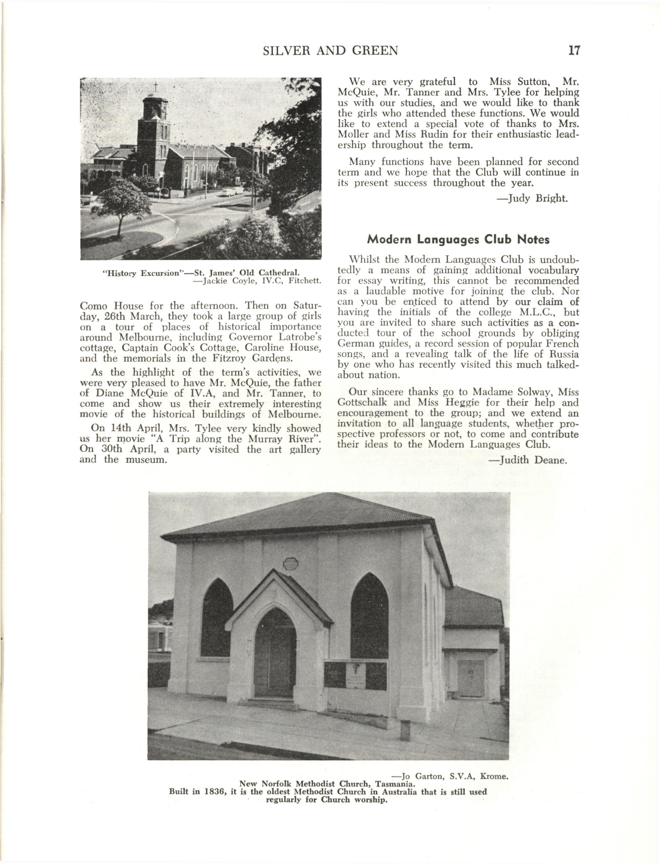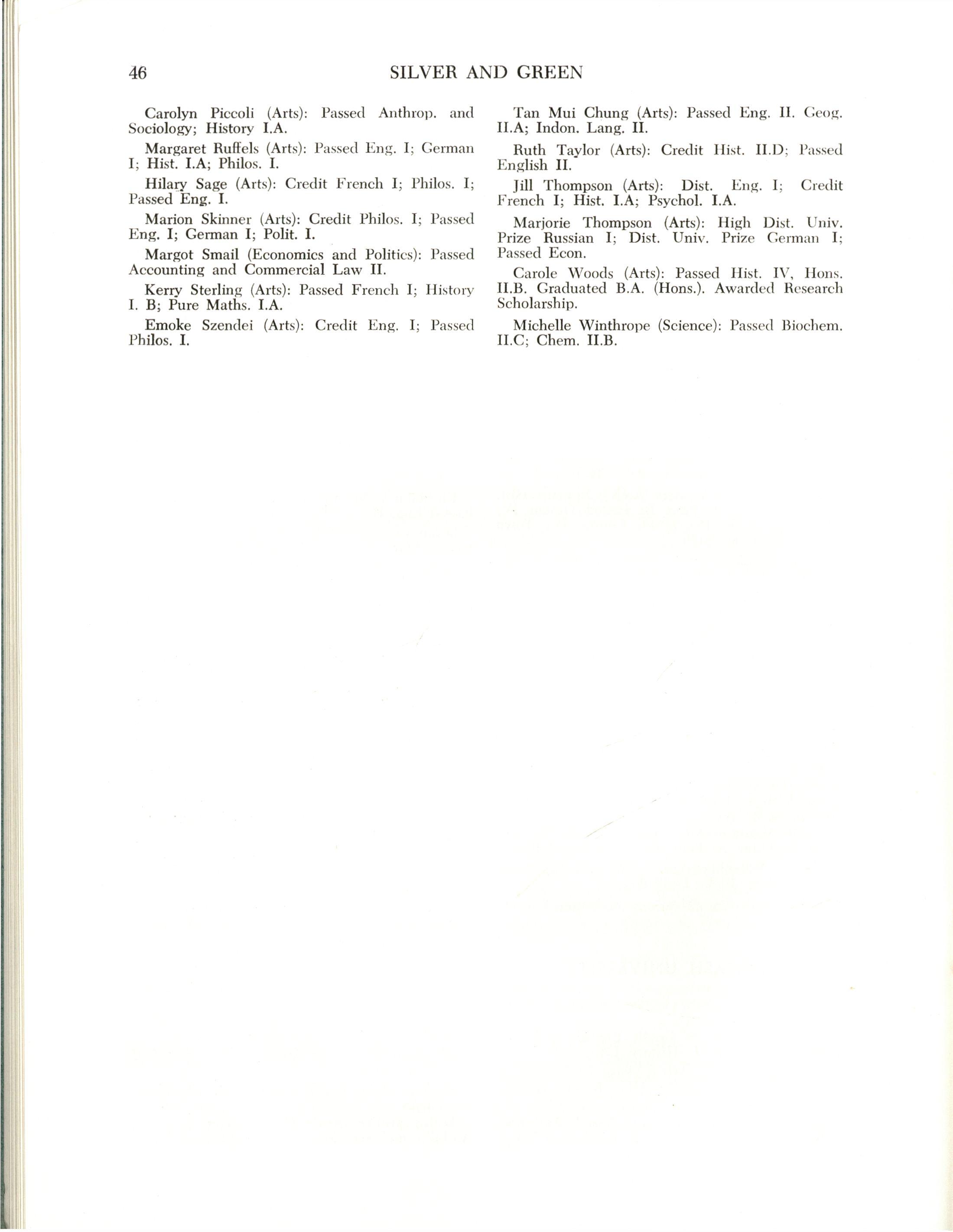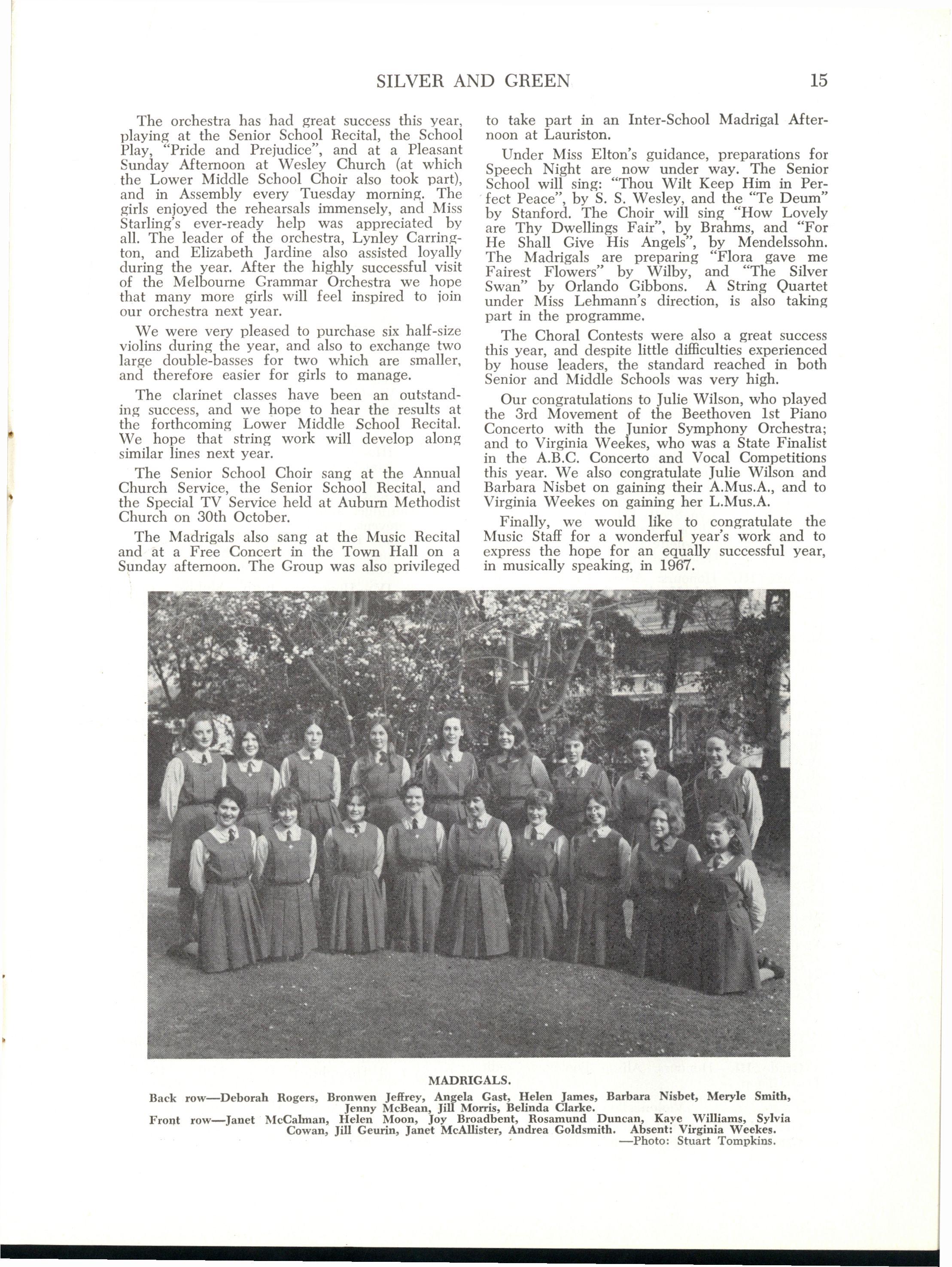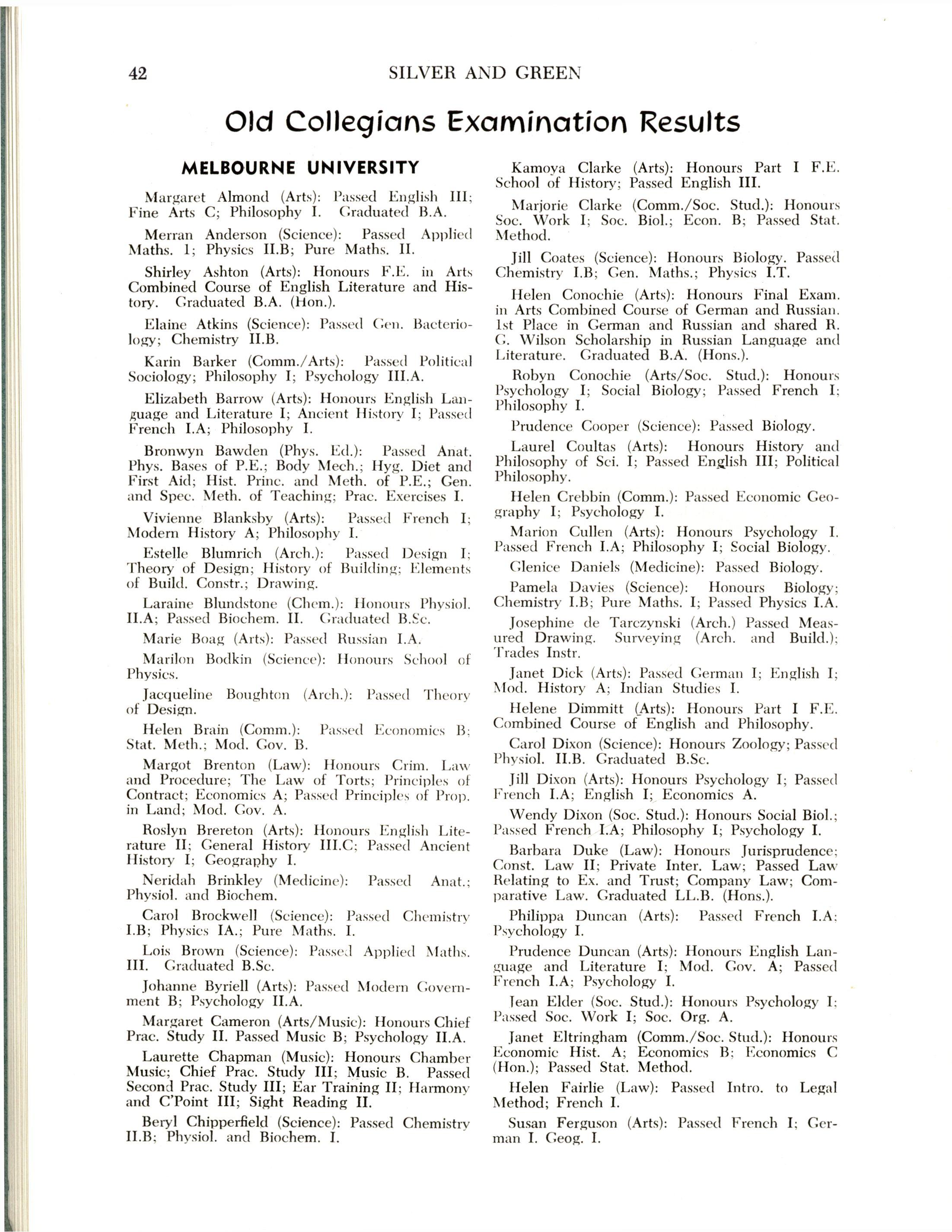 The Editress wishes to thank all those who have assisted in any way with the production of this Magazine Very special thanks are given to the President, Mrs. Lumley (Una Harrison), for her untiring assistance, to Mrs F Cornell (Edna Pryor), to Miss Margot Cant, to Miss Dorothy Nance and to Mrs J B Hewitt (Margaret Day) There are many who have contributed to this Magazine and we ask them to regard this as personal thanks
