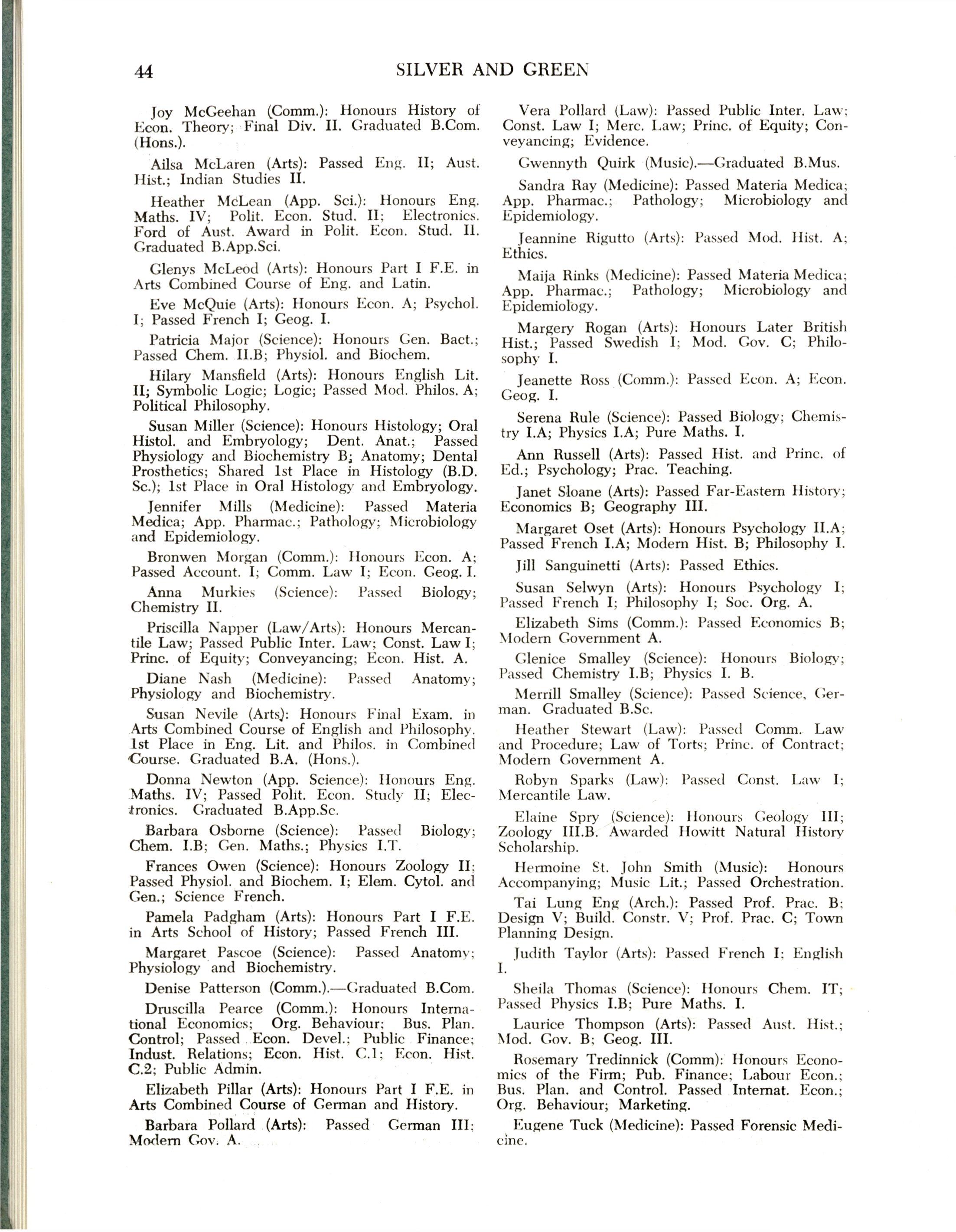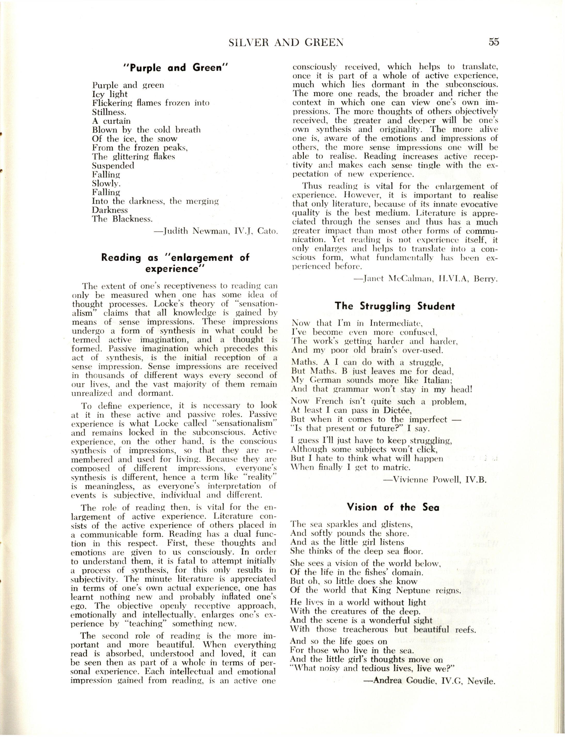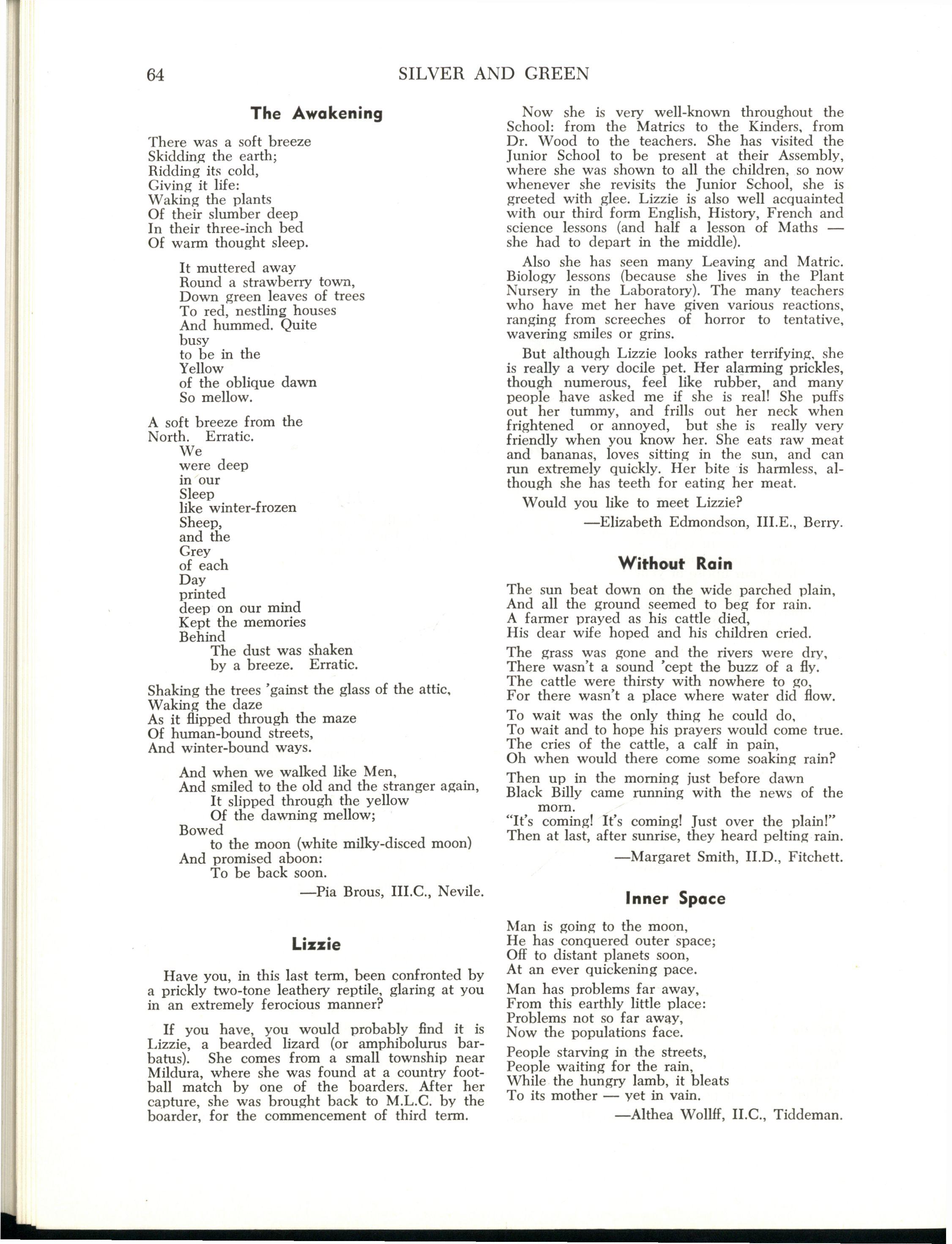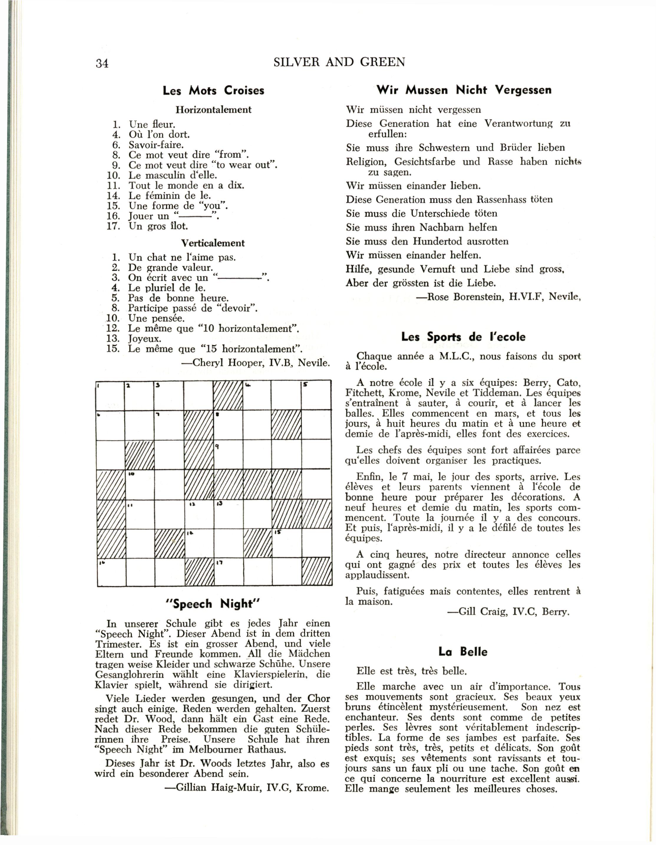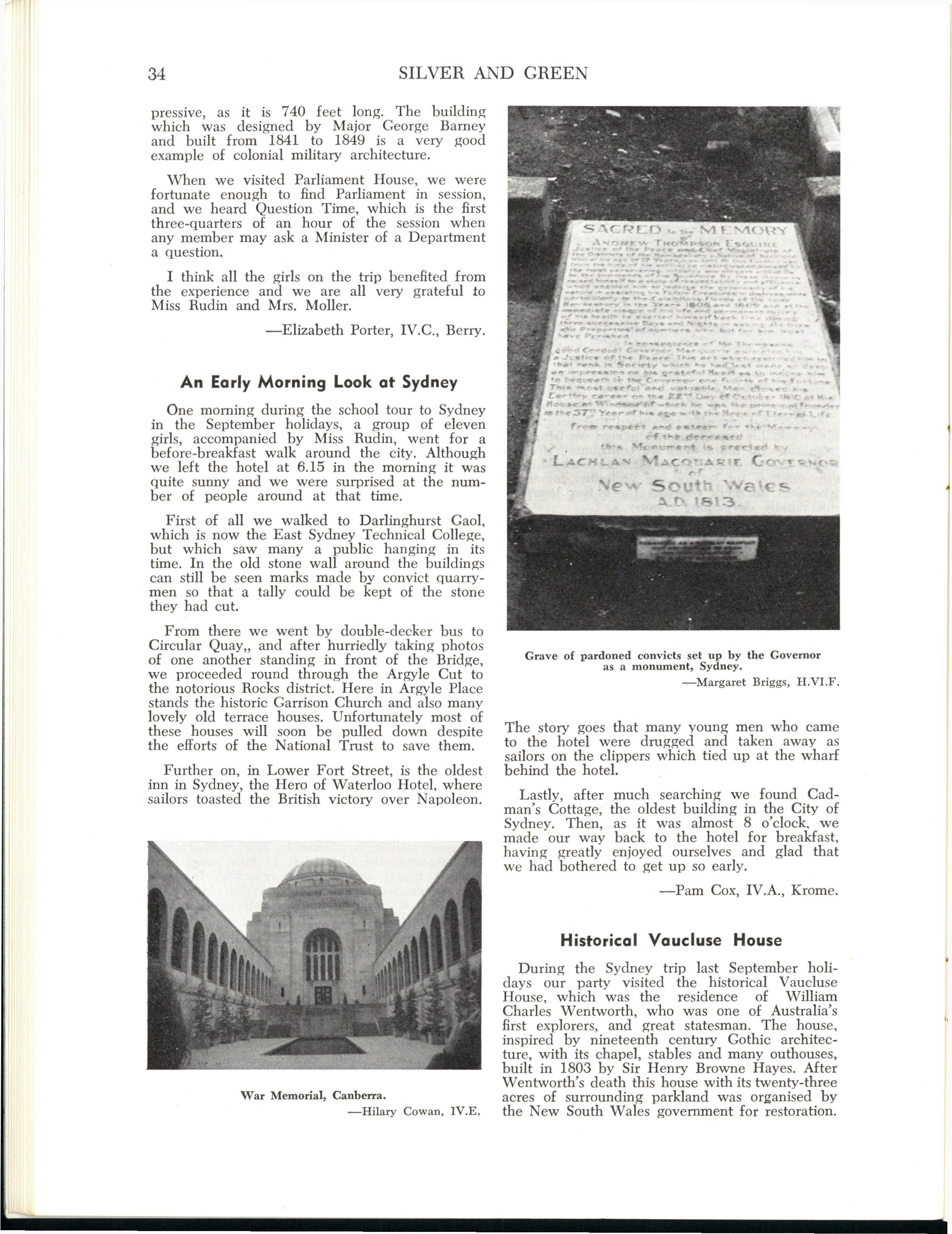 The Editress wishes to thank all those who have assisted in any way with the production of this Magazine Very special thanks are given to the President, Mrs. Lumley (Una Harrison), for her untiring assistance, to Mrs F Cornell (Edna Pryor), to Miss Margot Cant, to Miss Dorothy Nance and to Mrs J B Hewitt (Margaret Day) There are many who have contributed to this Magazine and we ask them to regard this as personal thanks