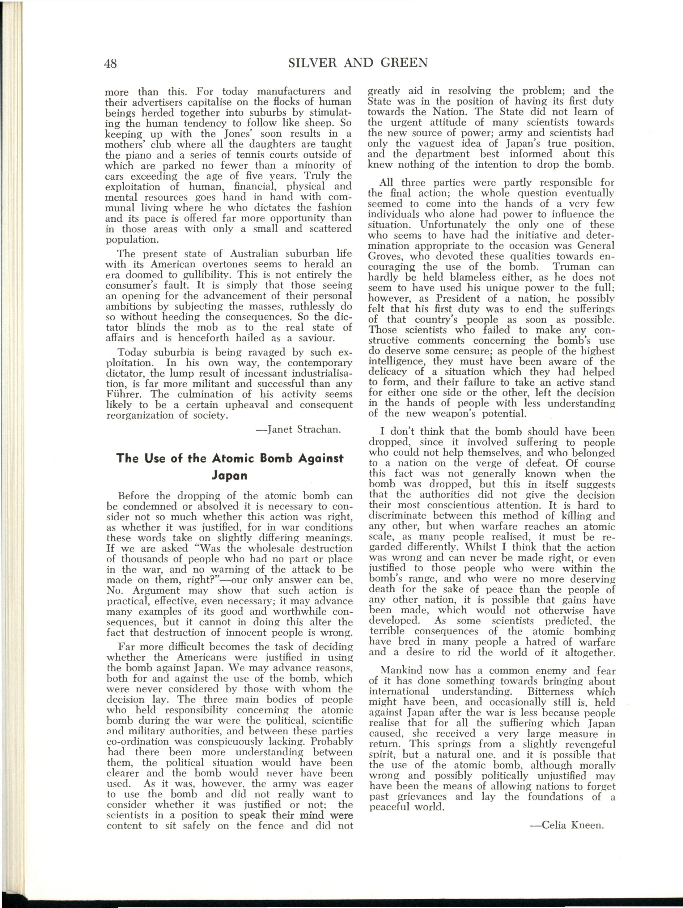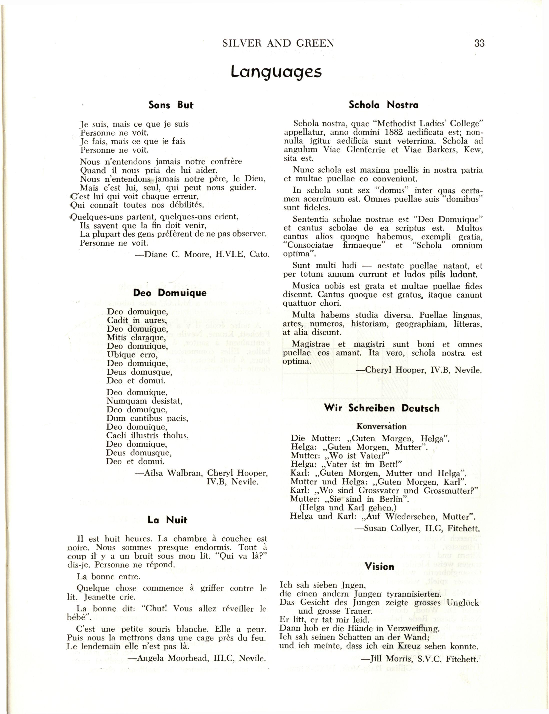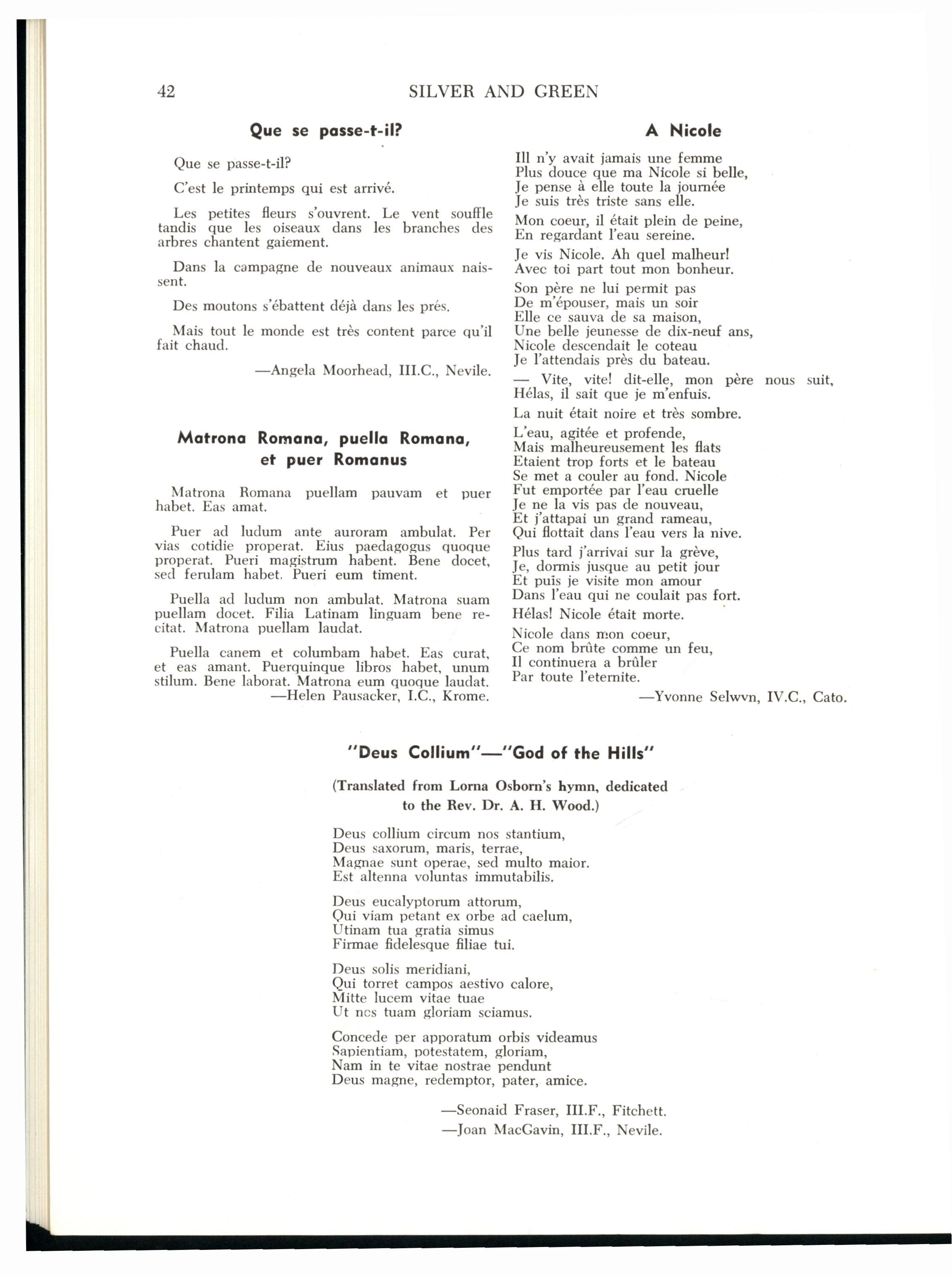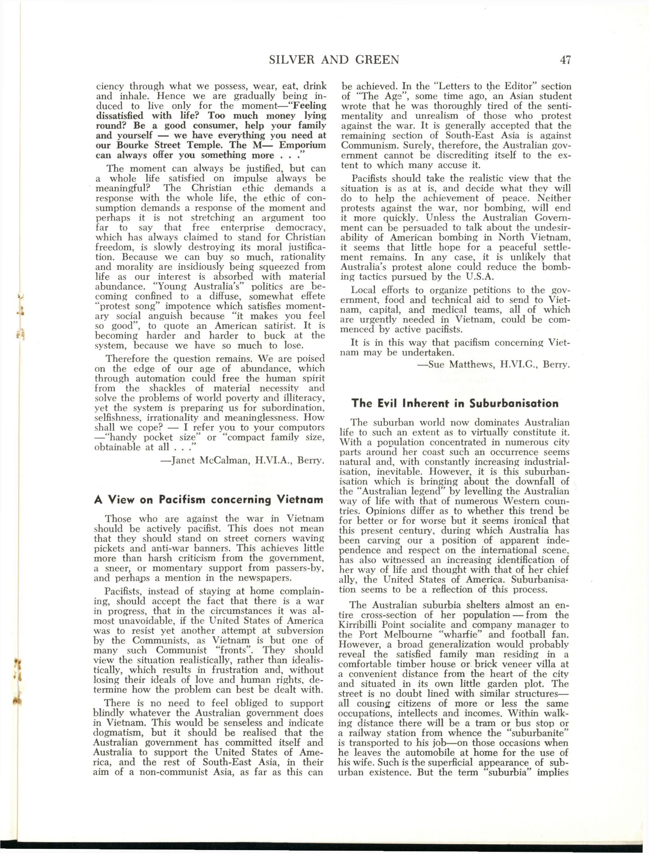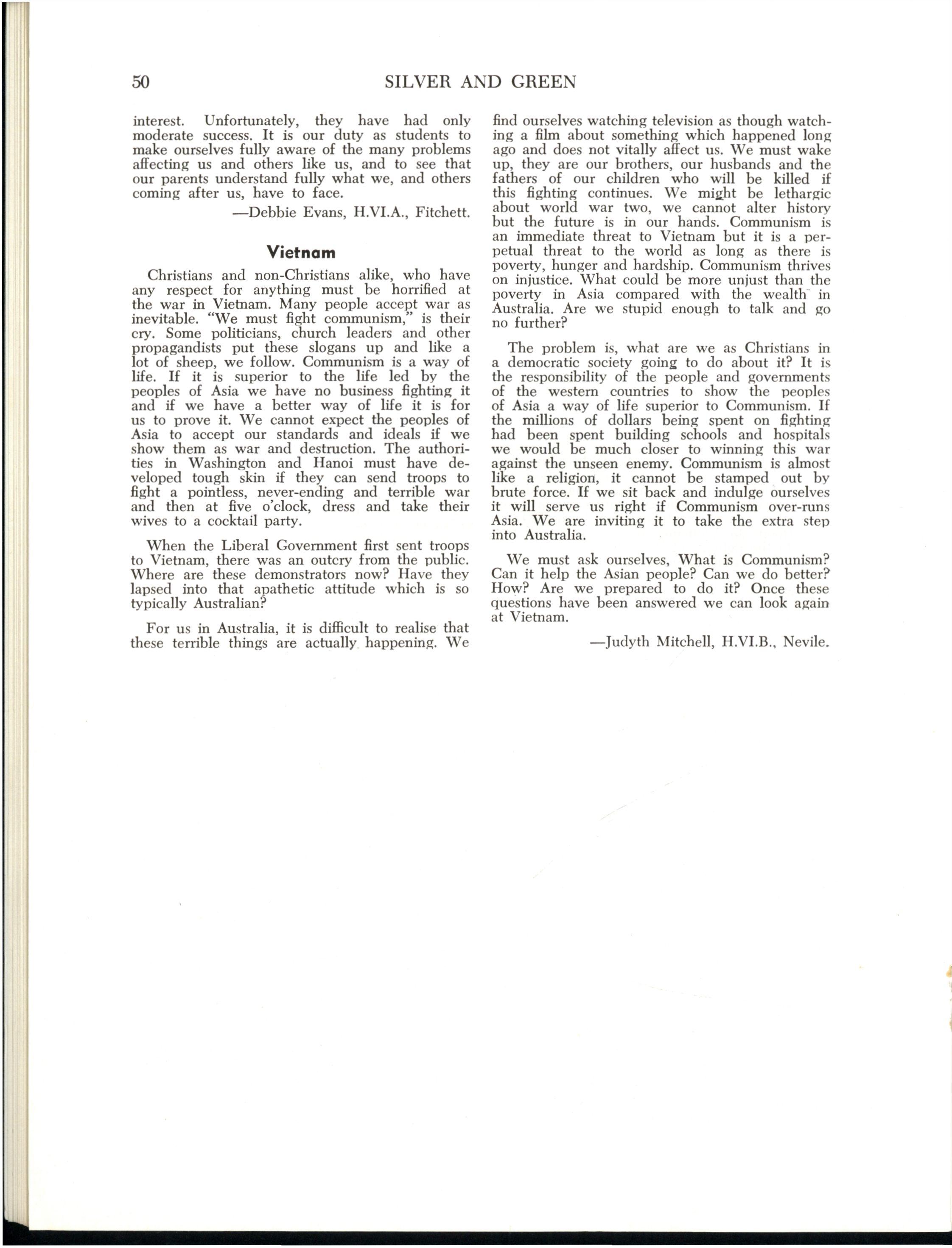 The Editress wishes to thank all those who have assisted in any way with the production of this Magazine Very special thanks are given to the President, Mrs. Lumley (Una Harrison), for her untiring assistance, to Mrs F Cornell (Edna Pryor), to Miss Margot Cant, to Miss Dorothy Nance and to Mrs J B Hewitt (Margaret Day) There are many who have contributed to this Magazine and we ask them to regard this as personal thanks
