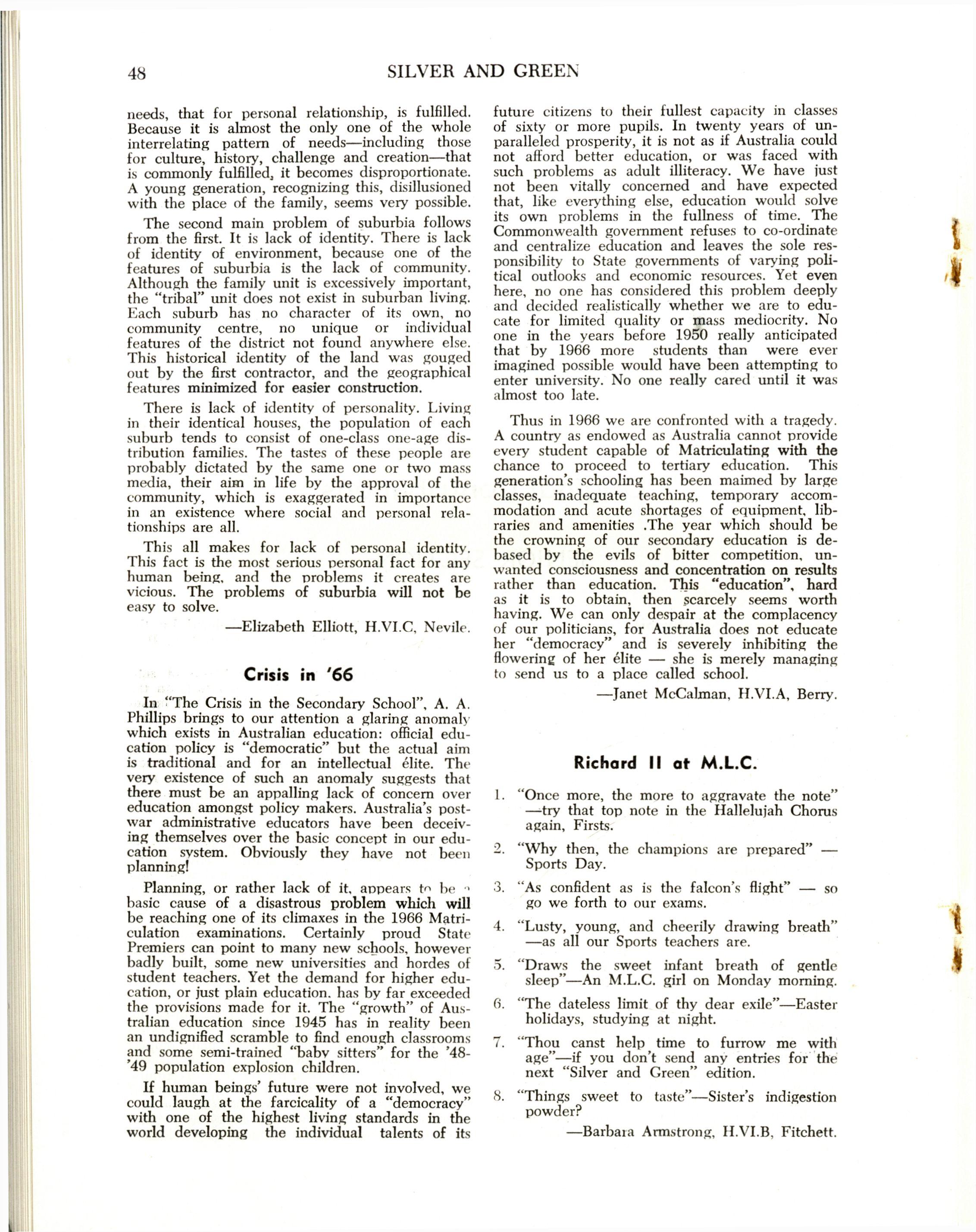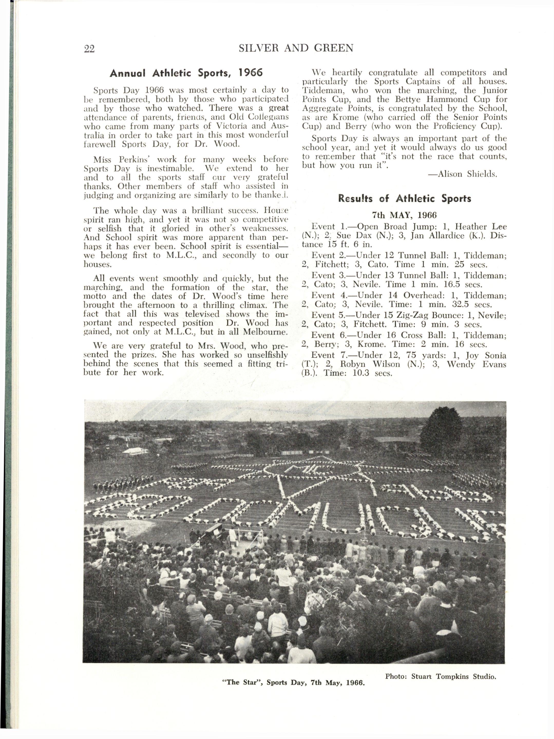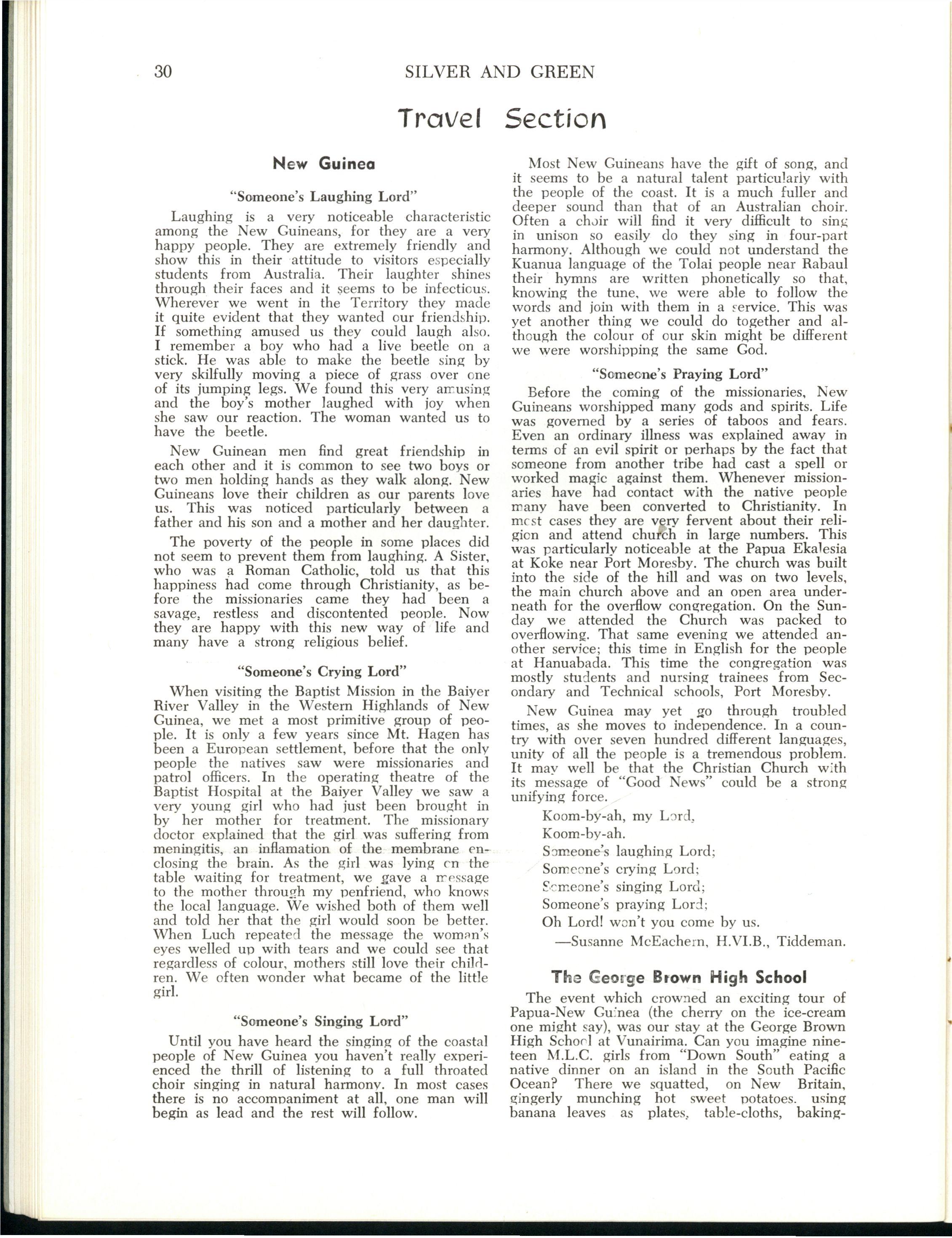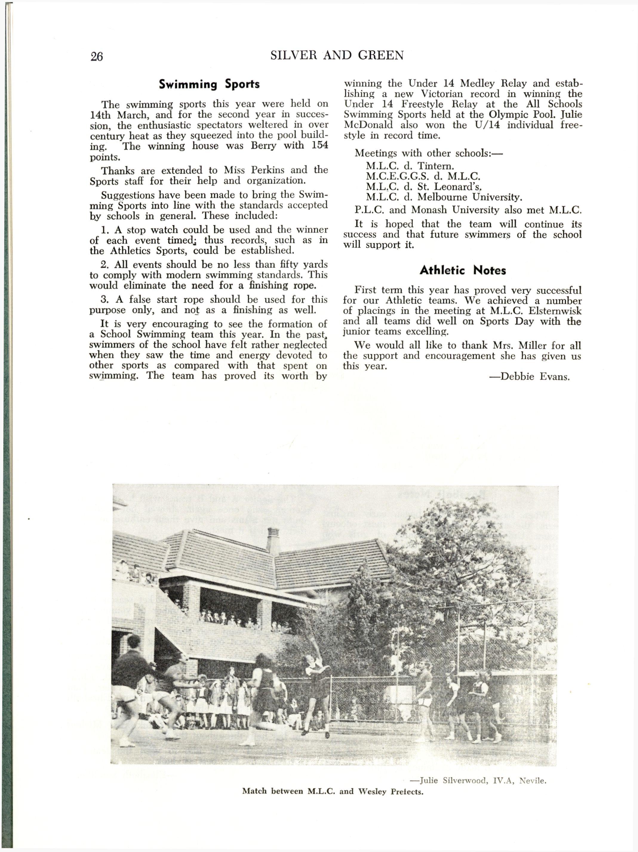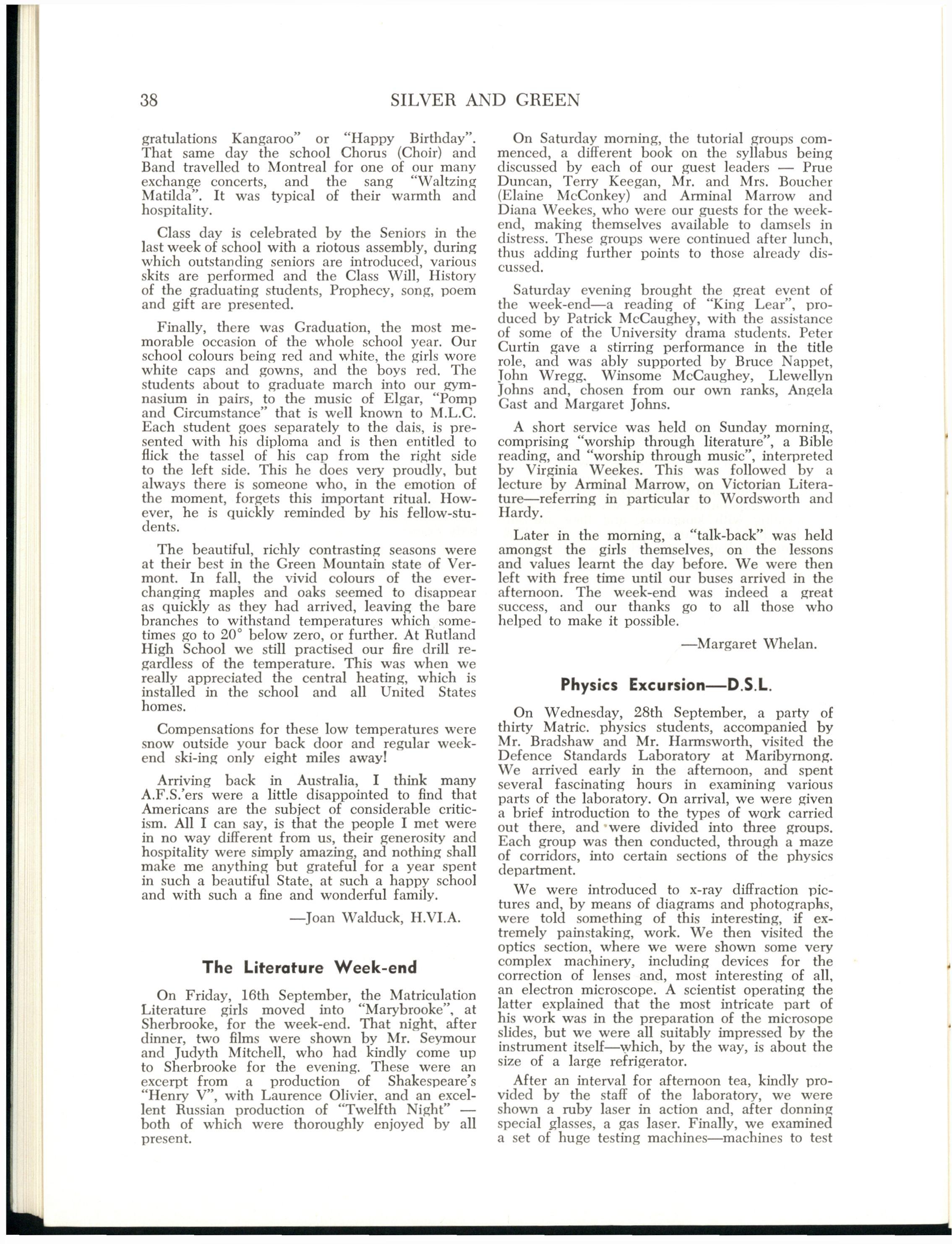 We were delighted to welcome Mr and Mrs Woodgate to M.L.C at the beginning of this year Already Mr Woodgate is showing himself to be interested in many school activities, and we were especially pleased to see him ably participating in the staff baseball match early in first term This event also provided us the opportunity of seeing how well he had accomplished the task of acquainting himself with the teachers As our School Chaplain and in all other capacities, Mr Woodgate invites our trust and confidence