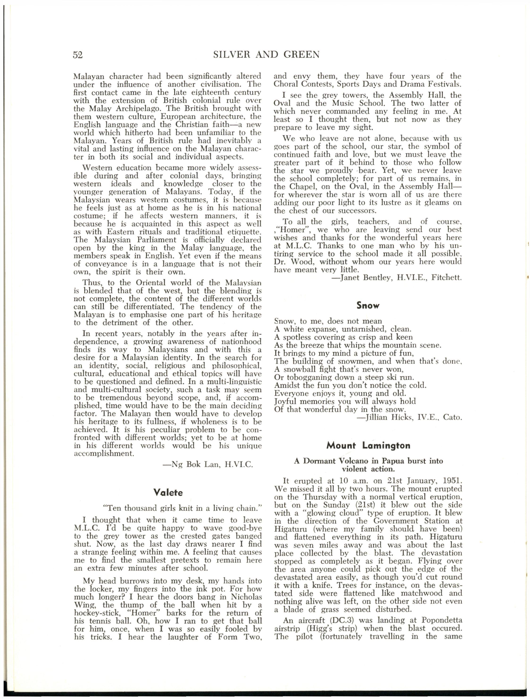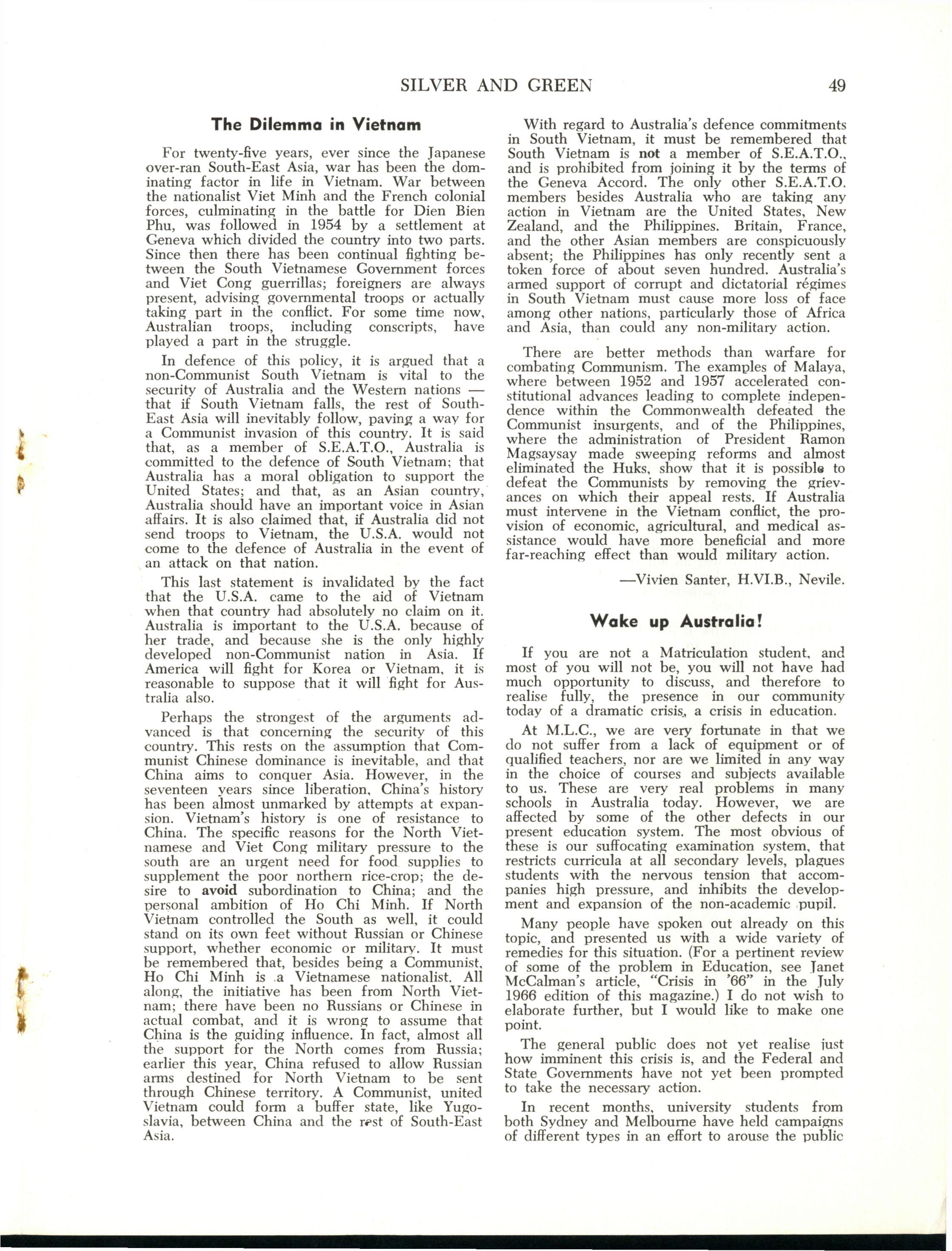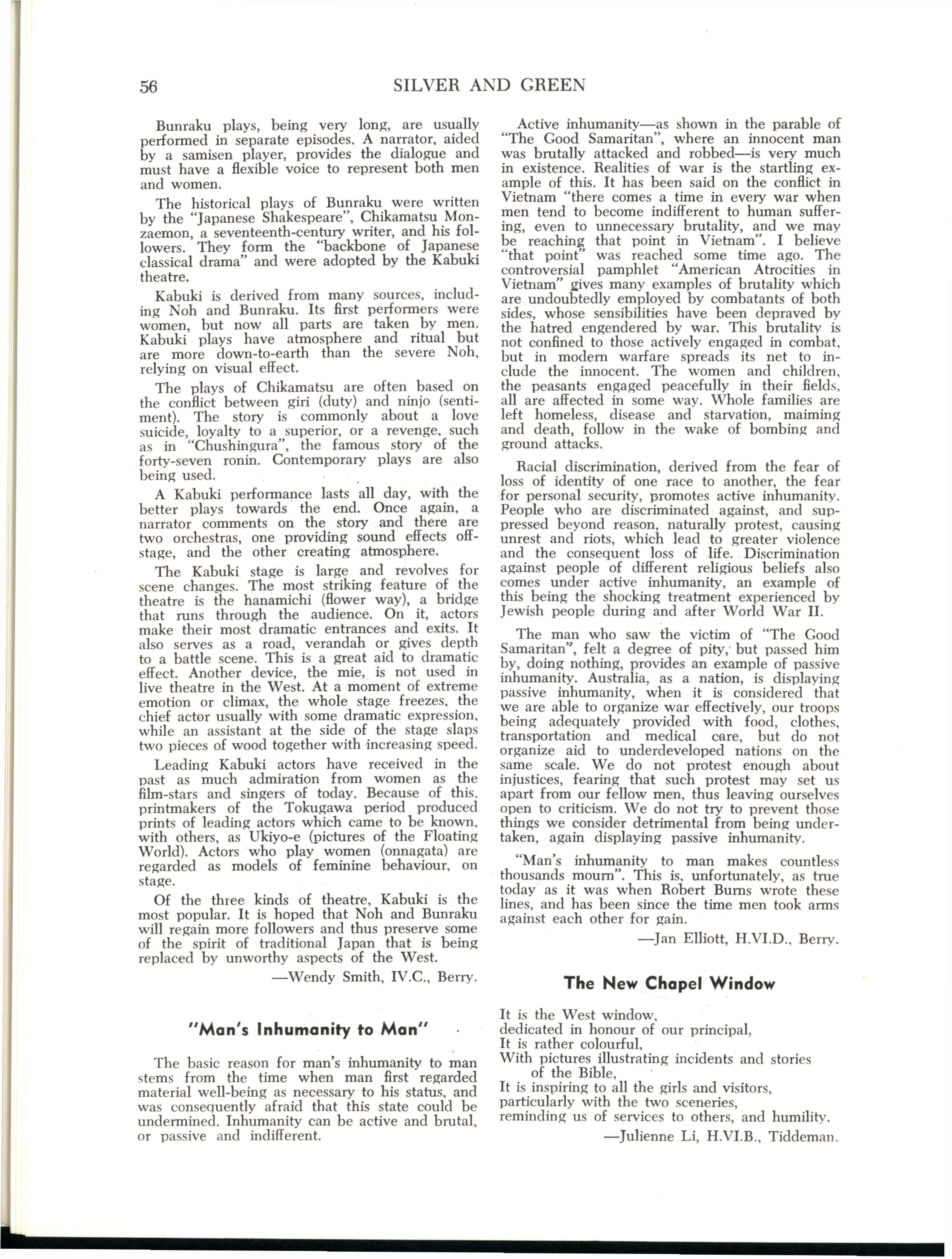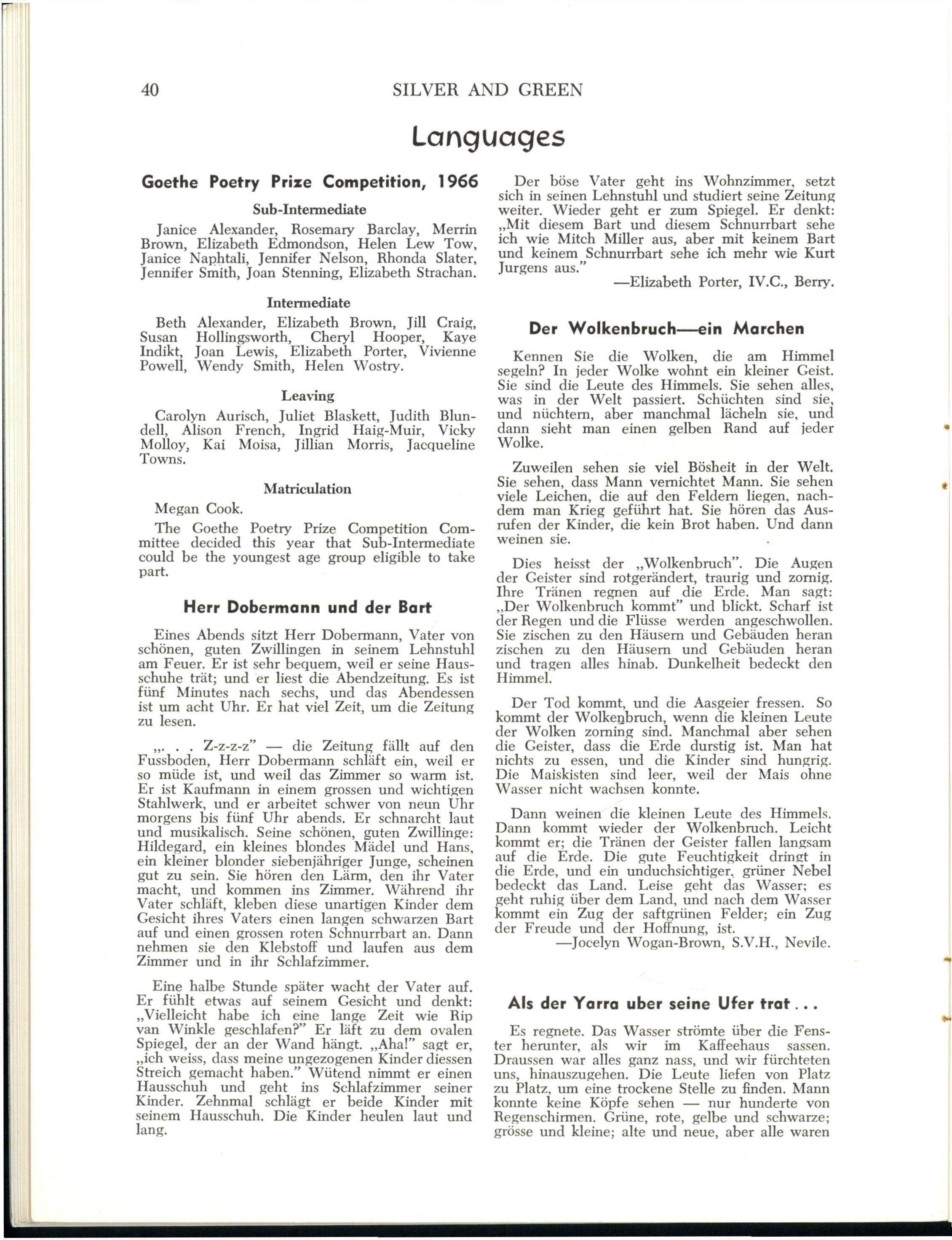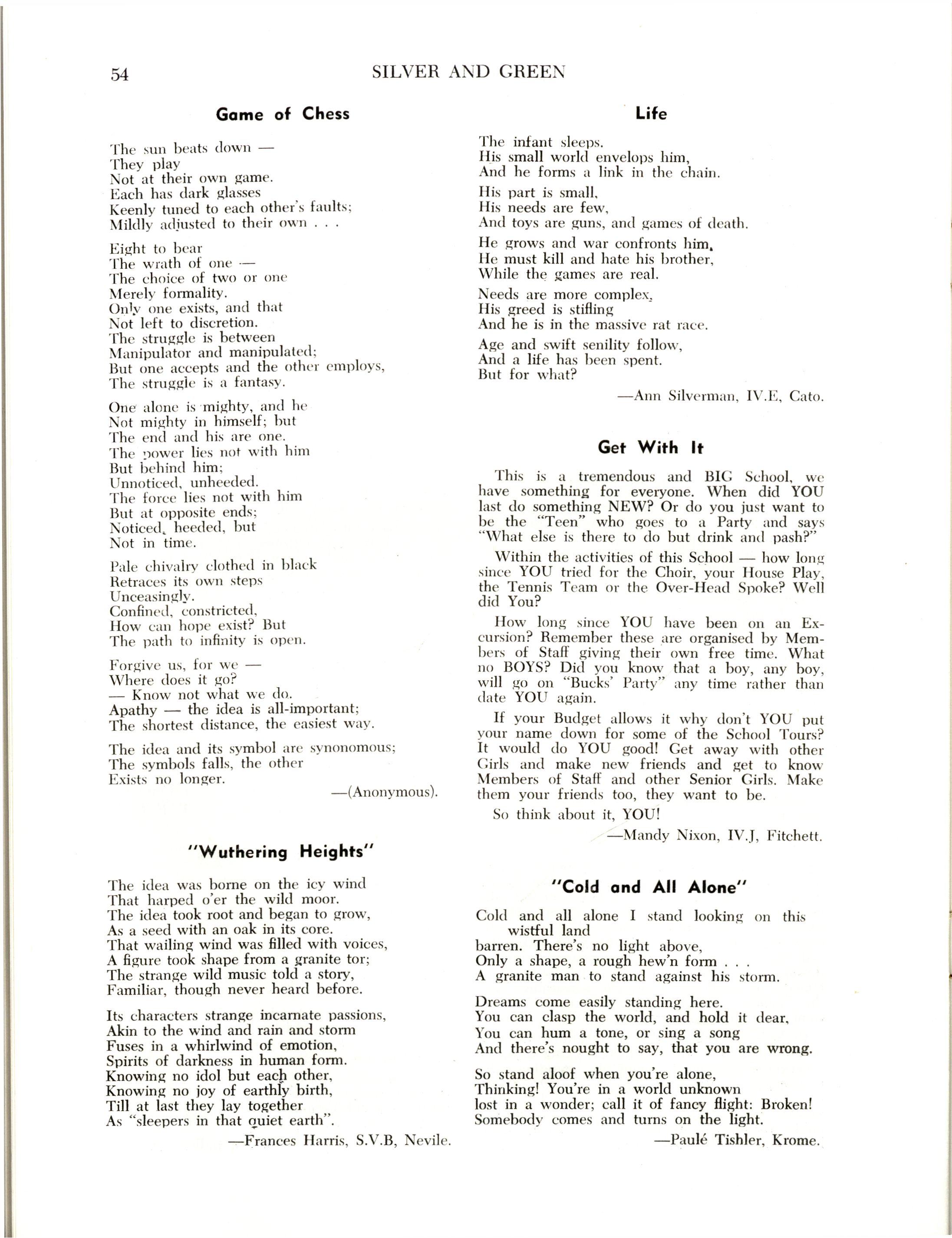 We were delighted to welcome Mr and Mrs Woodgate to M.L.C at the beginning of this year Already Mr Woodgate is showing himself to be interested in many school activities, and we were especially pleased to see him ably participating in the staff baseball match early in first term This event also provided us the opportunity of seeing how well he had accomplished the task of acquainting himself with the teachers As our School Chaplain and in all other capacities, Mr Woodgate invites our trust and confidence