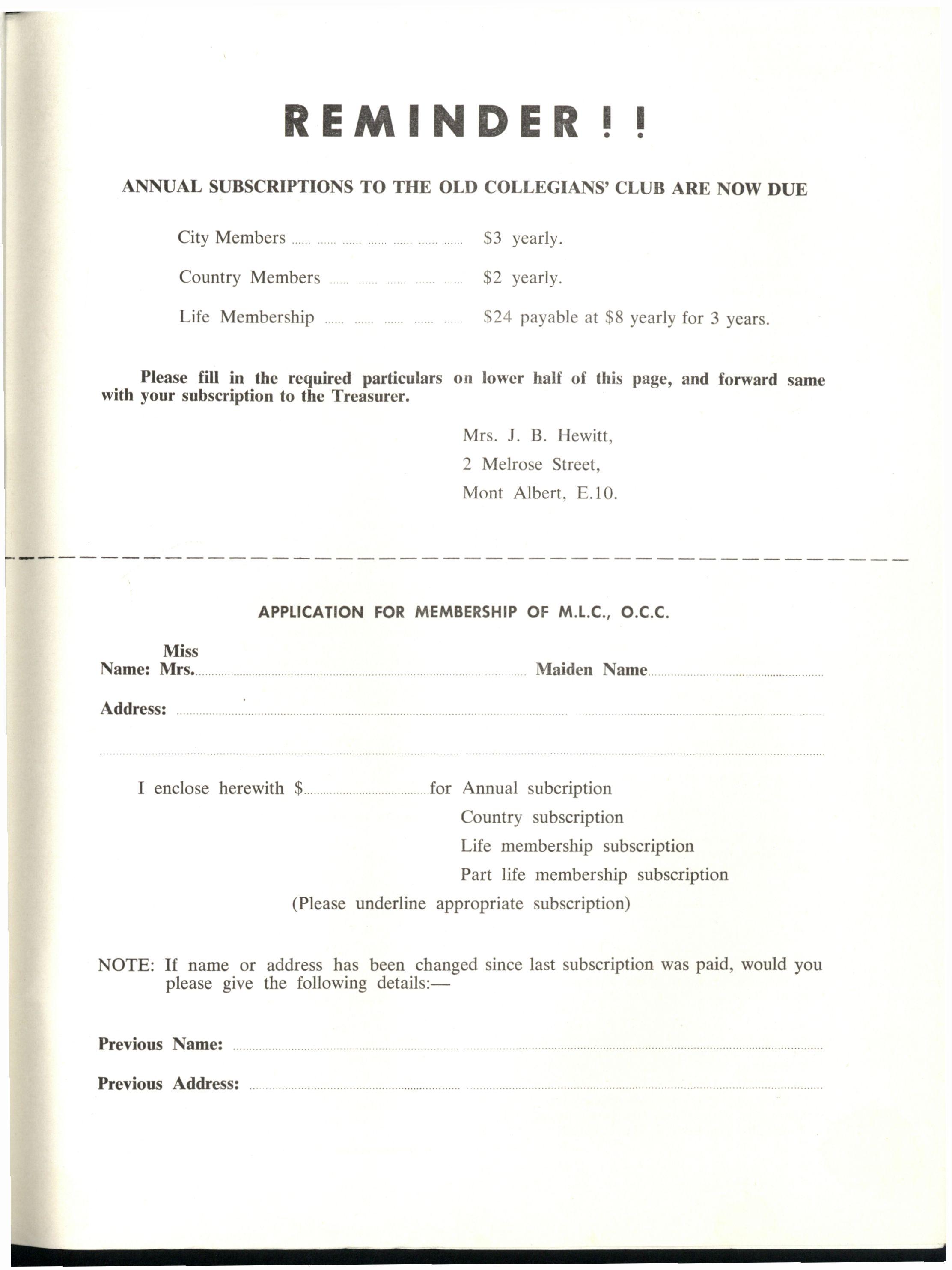 Please fill in the required particulars on lower half of this page, and forward same with your subscription to the Treasurer.