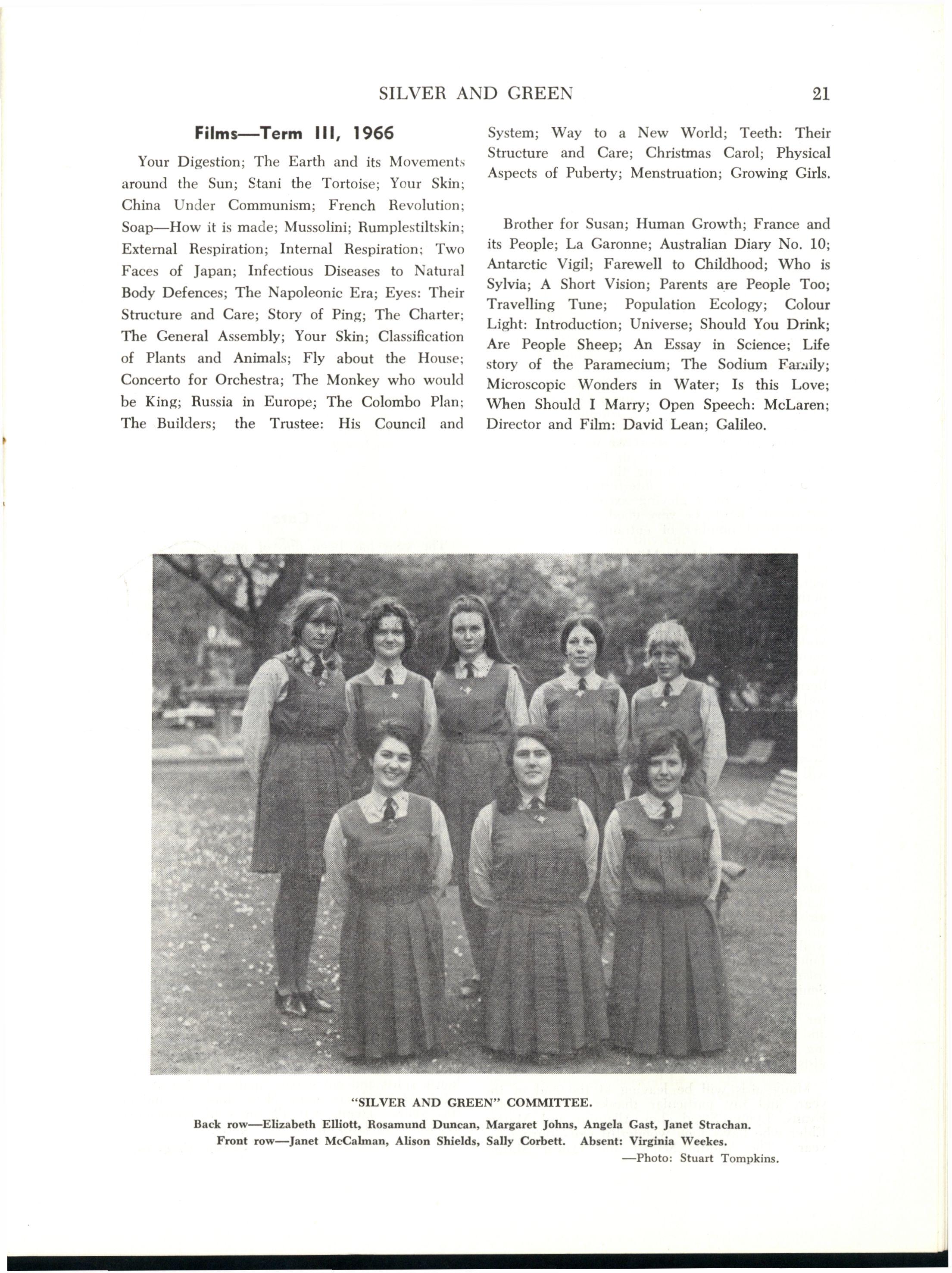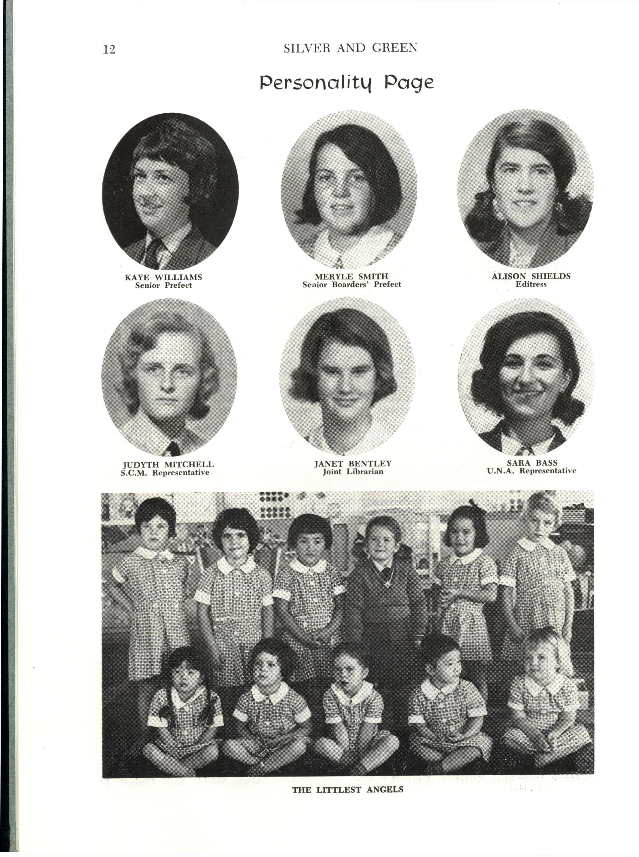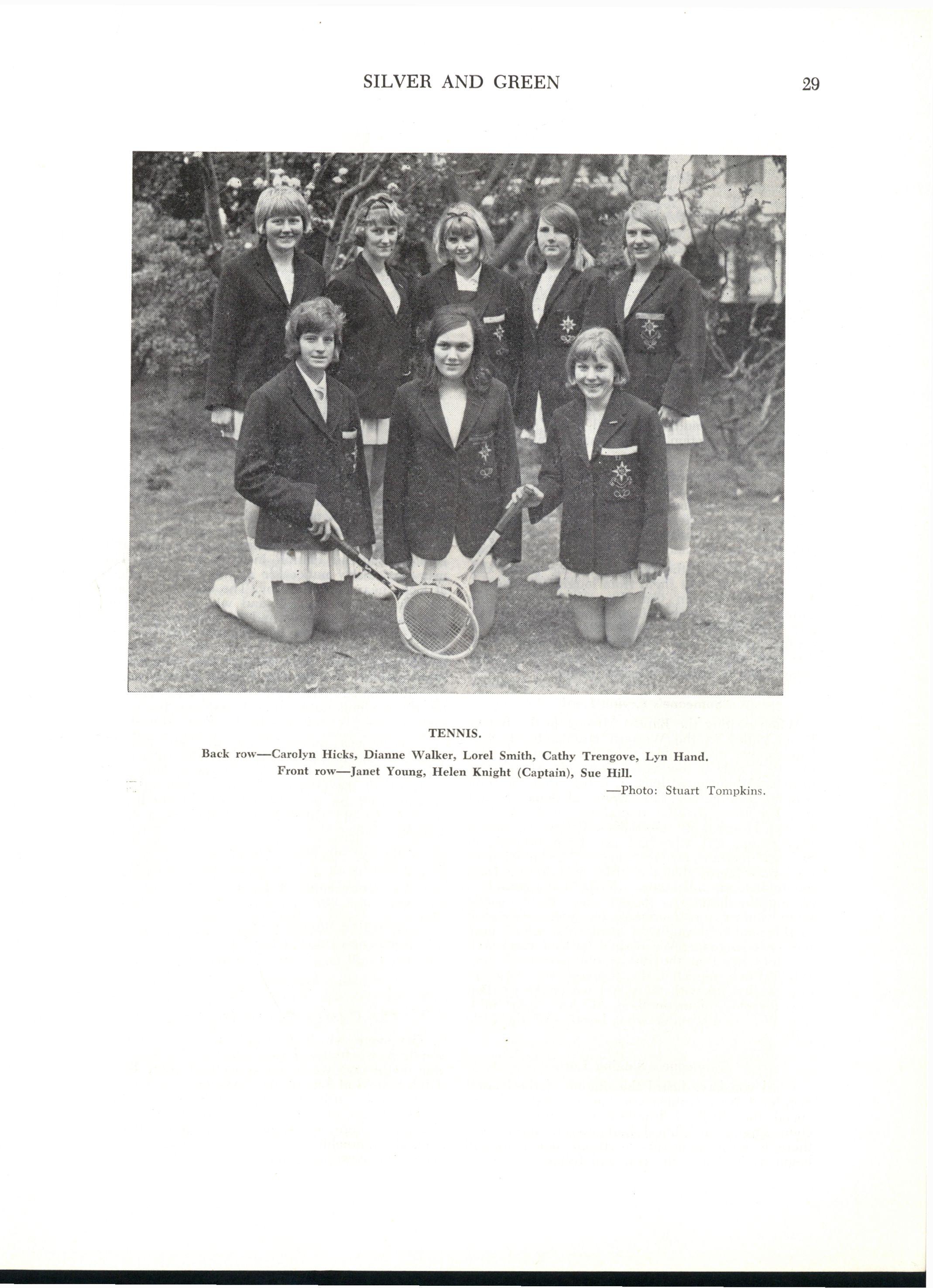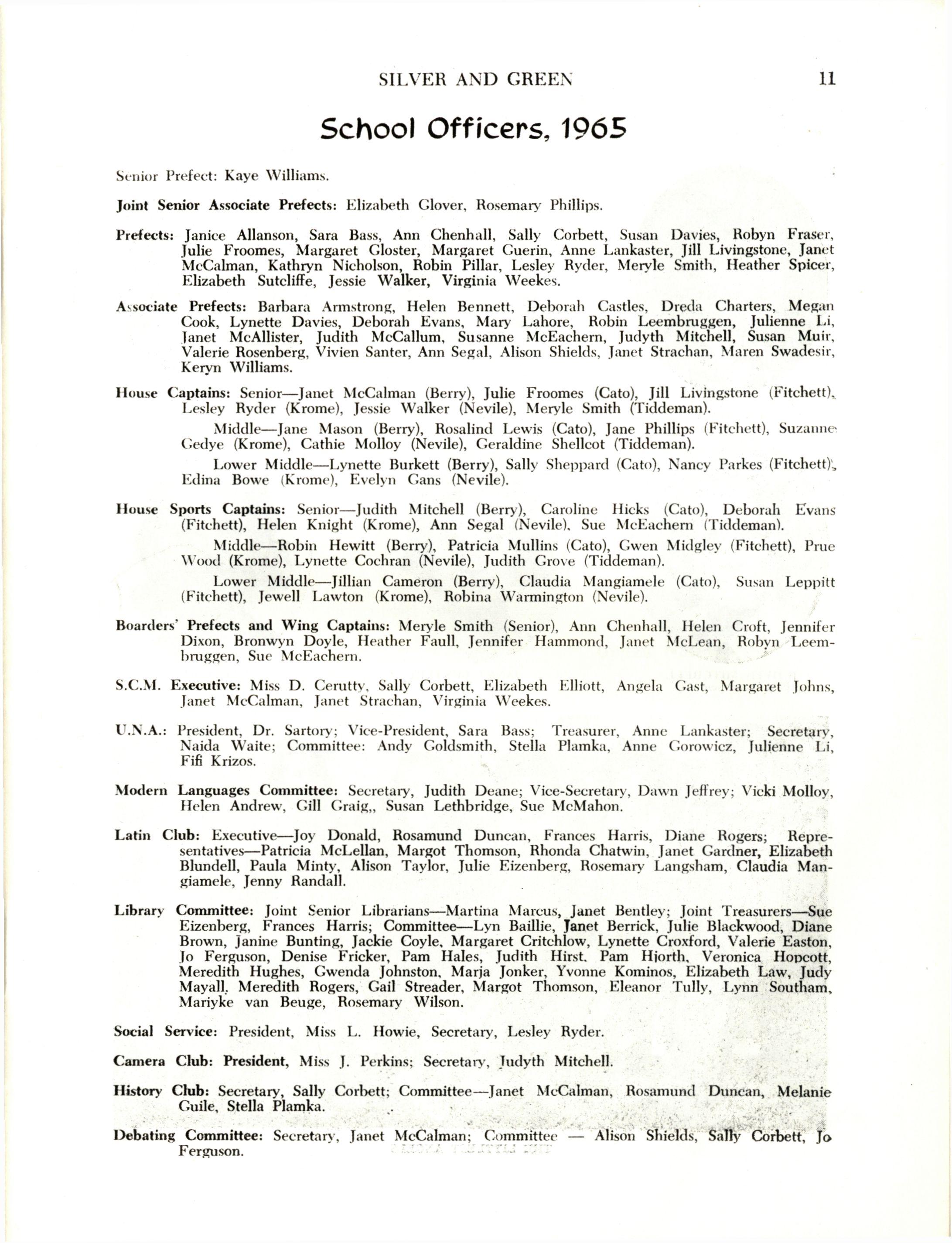 Committee: Miss D CERUTTY, Miss K KETTLE and Mrs M de KAM (Examination results, etc.), SALLY CORBETT, ROSAMUND DUNCAN, ELIZABETH ELLIOTT, ANGELA GAST, MARGABET JOHNS, JANET McCALMAN, ELIZABETH RAW, JANET STRACHAN, VIRGINIA WEEKES