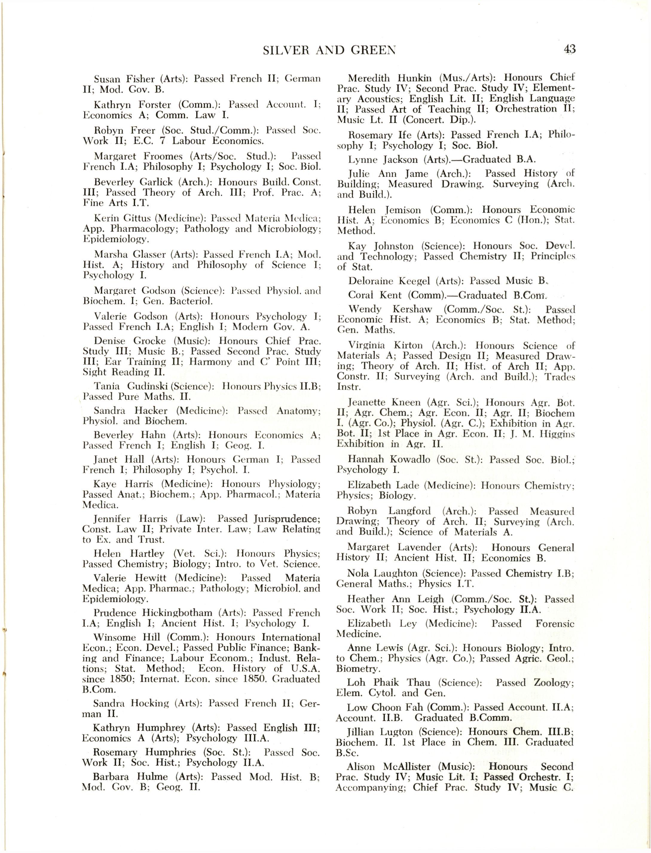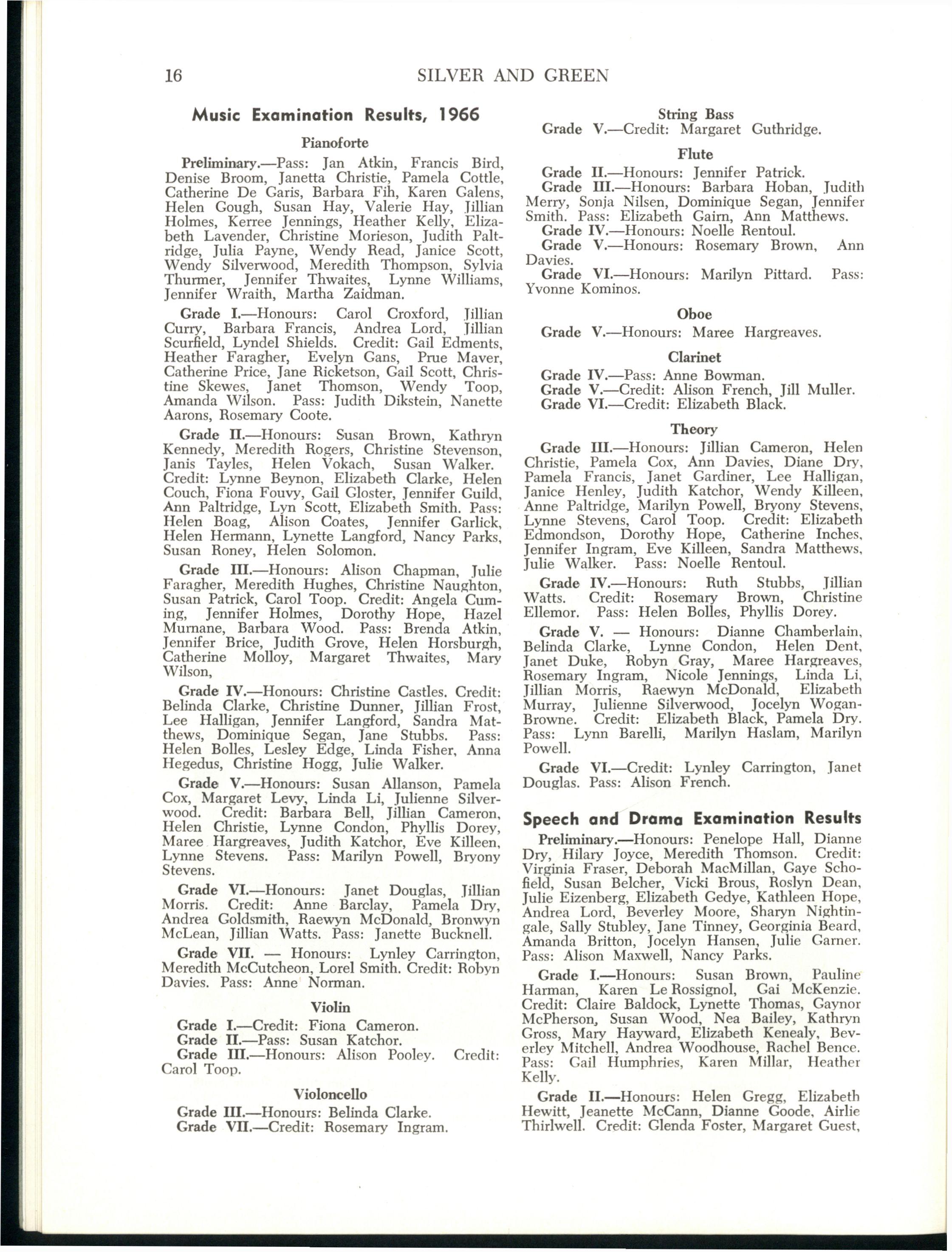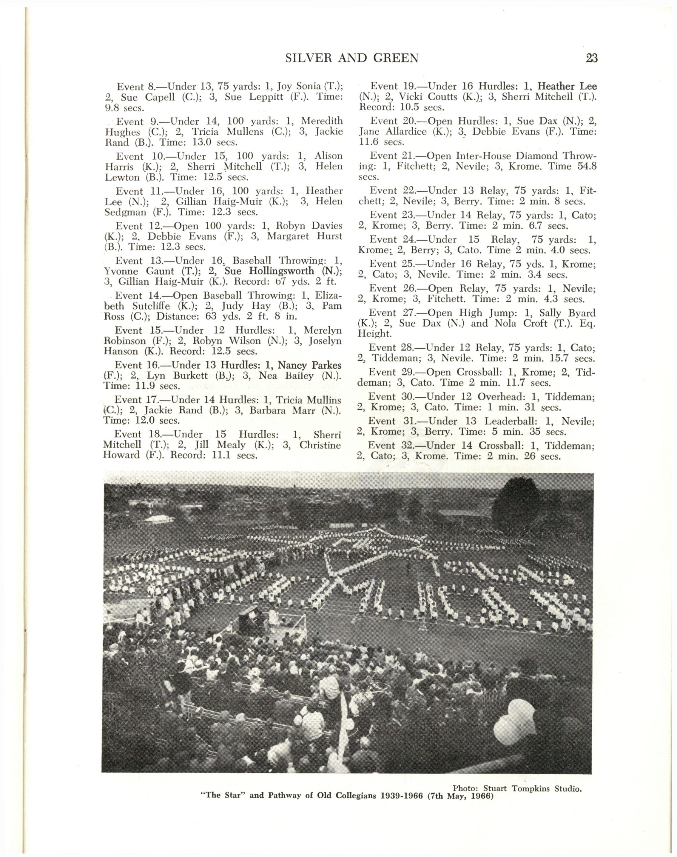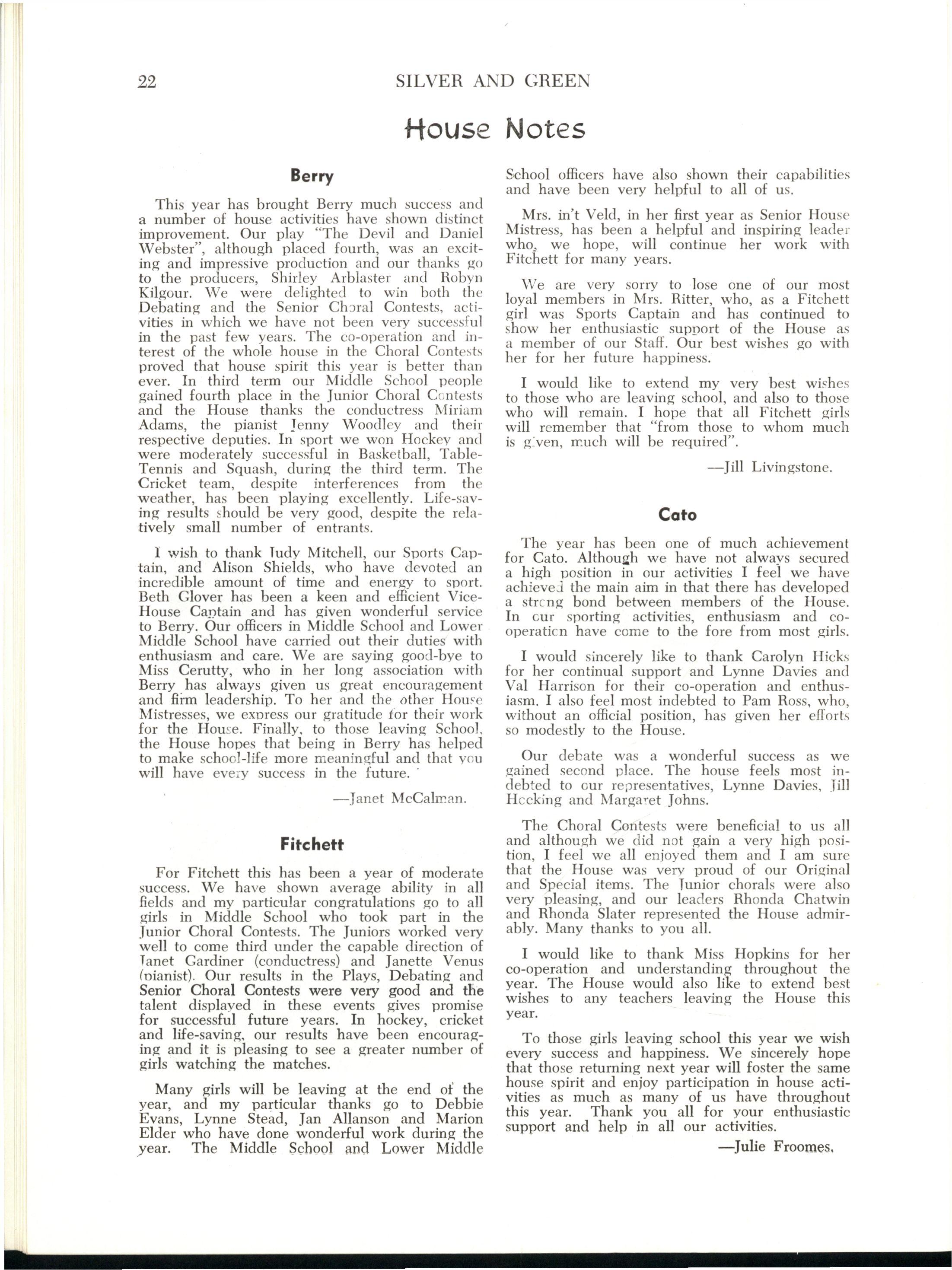 Committee: Miss D CERUTTY, Miss K KETTLE and Mrs M de KAM (Examination results, etc.), SALLY CORBETT, ROSAMUND DUNCAN, ELIZABETH ELLIOTT, ANGELA GAST, MARGABET JOHNS, JANET McCALMAN, ELIZABETH RAW, JANET STRACHAN, VIRGINIA WEEKES
