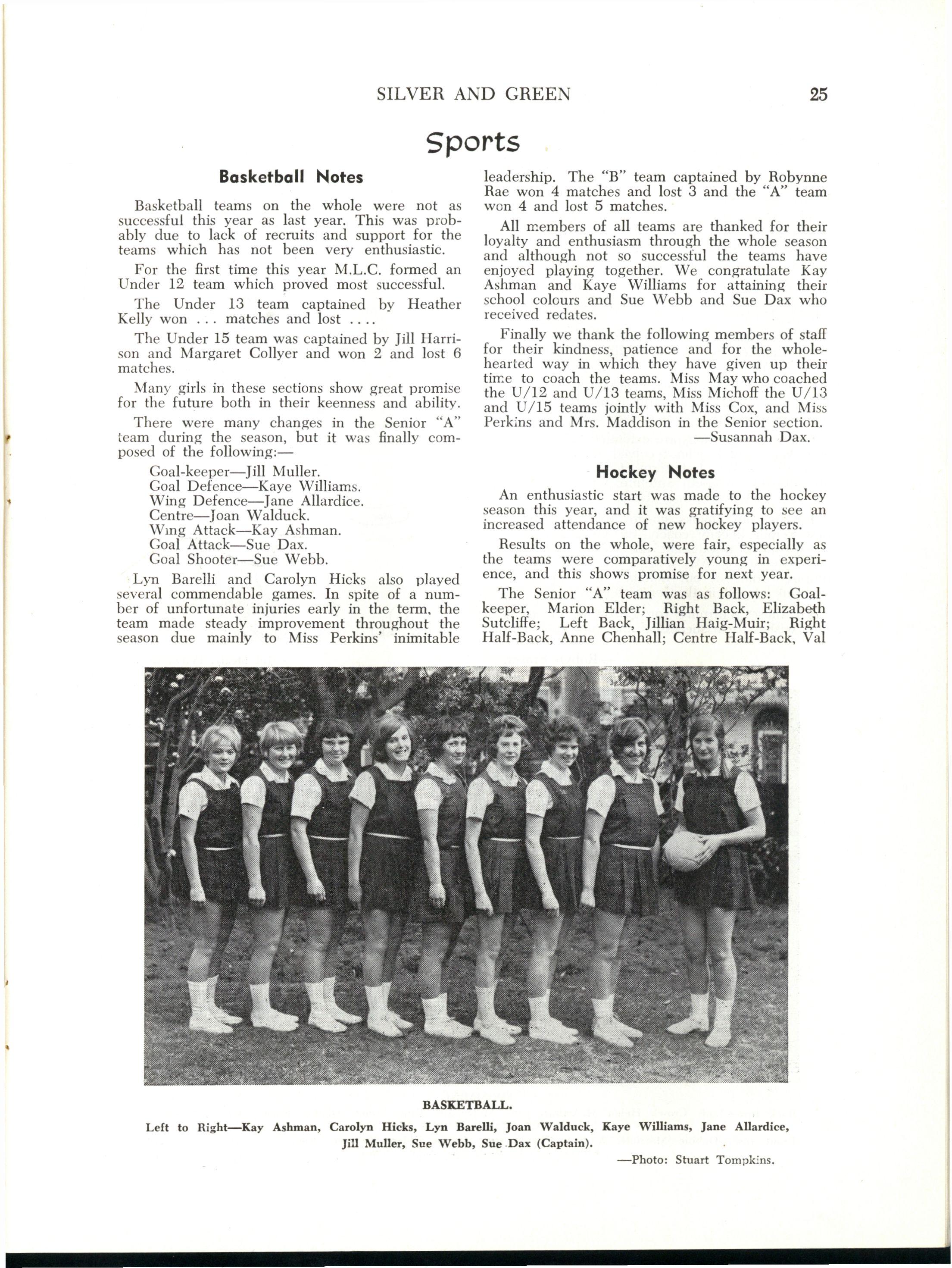While studying for her Diploma of Education, Miss Sutton visited M.L.C. with a group of students and was very impressed by the facilities, attitude and vision of the School. The enthusiasm shown by Dr. Wood and atmosphere of the School made her resolve to come here to teach. The next year she was teaching history to Junior V forms, the beginning of a career which was to