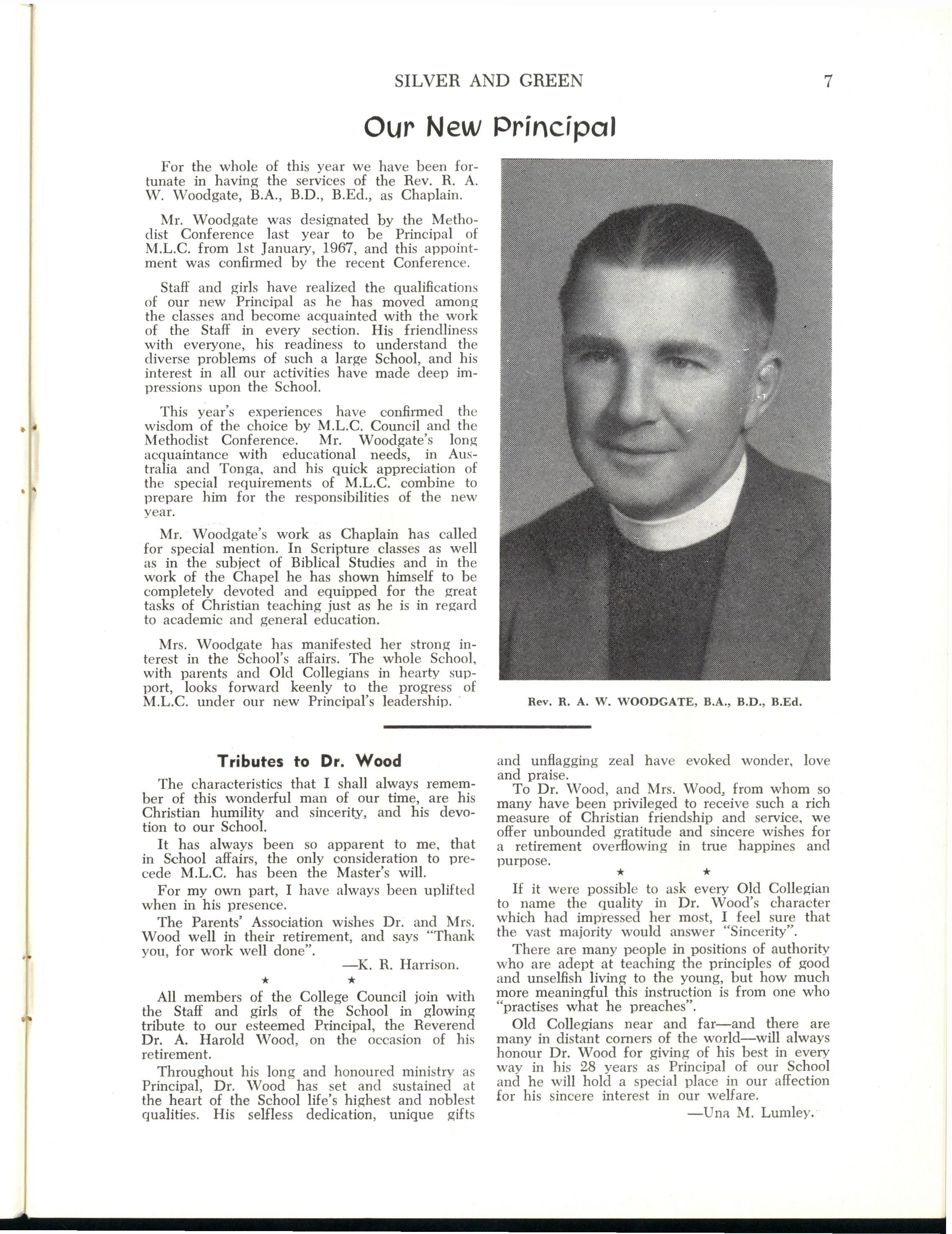 The Rev R A W Woodgate, B.A., B.D., B.Ed., has been appointed principal-designate, and he is to attend the school in 1966 as Chaplain.