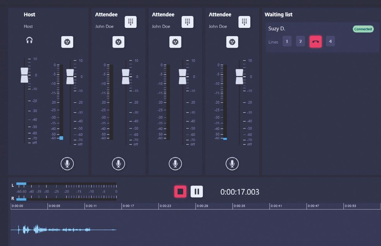 “Besides the host, the Voice Booth allows up to three remote contributors through SIP, for calls to regular phones, or through webRTC for high-quality web-based interviews.” The guest receives an invitation and a personal link to a web page that can be opened on a smartphone or computer.