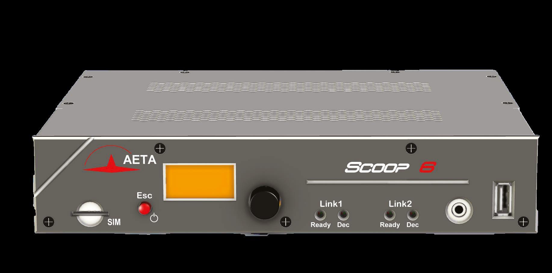 commentary unit. Features include 5G capability, embedded Bluetooth and Wi-Fi, as well as two mobile network connections. And AETA added 5G capability to its ScoopFone audio codec, with the same look and feel of the ScoopFone4G but now offering the ability to connect to 5G, 4G and 3G networks.