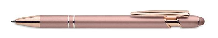 Recycled aluminium stylus push ball pen with rose gold details. Blue ink.