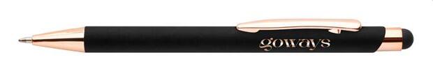 The Nanna ballpoint pen with rose gold finish has a barrel made of recycled aluminium with a touch stylus made of silicone. Recycled aluminium reduces the amount of waste in landfills and helps to conserve natural resources aiming to reduce greenhouse emissions. Ink colour: Blue. Writing length: 800 metres. Nib size: 1.0 mm. Recycled Aluminium.