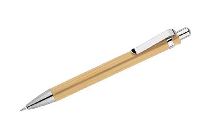 Long lasting push button inkless pen with bamboo barrel and shiny chrome fittings. The pen writes with the graphite tip. Bamboo is a natural product, there may be slight variations in colour and size per item, which can affect the final decoration outcome.
