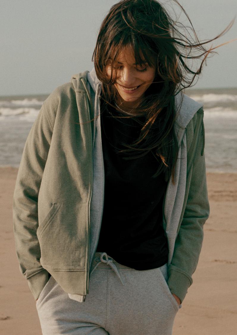 Unisex modern fit zip through hoodie made from 100% cotton, of which 50% is recycled and 50% organic, in 340 G/M². The zip through hoodie has a double-layered hood, long sleeves and 1x1 rib. The inside is softbrushed fleece for extra comfort. The use of genuine recycled & organic fabric materials and environmental impact claims are guaranteed, by using the AWARE™ disruptive physical tracer and blockchain technology. By scanning the QR code, you will gain access to a dedicated digital passport of the product. 2% of proceeds of each sold product will be donated to Water.org. This product is OEKO-TEX® STANDARD 100 2303045 Centexbel certified. Due to the nature of recycled yarns, impurities and colour variations may appear.