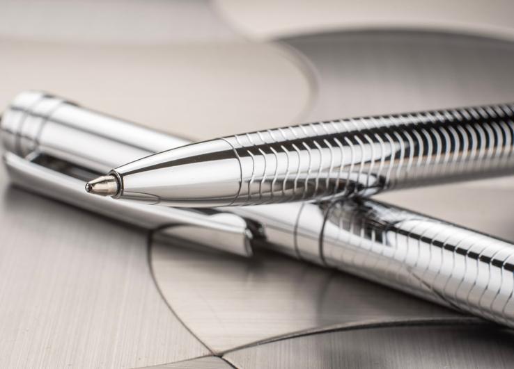 Introducing the bestselling KALIPSO pen with an elegant chrome surface, now available in a new, eco-friendly design: made from recycled aluminium (rKALIPSO). With three stylish rings and a blue refill, this automatic pen combines modern design with functionality. The chrome surface gives it a prestigious look, ideal for professional use. The possibility of logo branding on the surface makes it the perfect promotional tool.