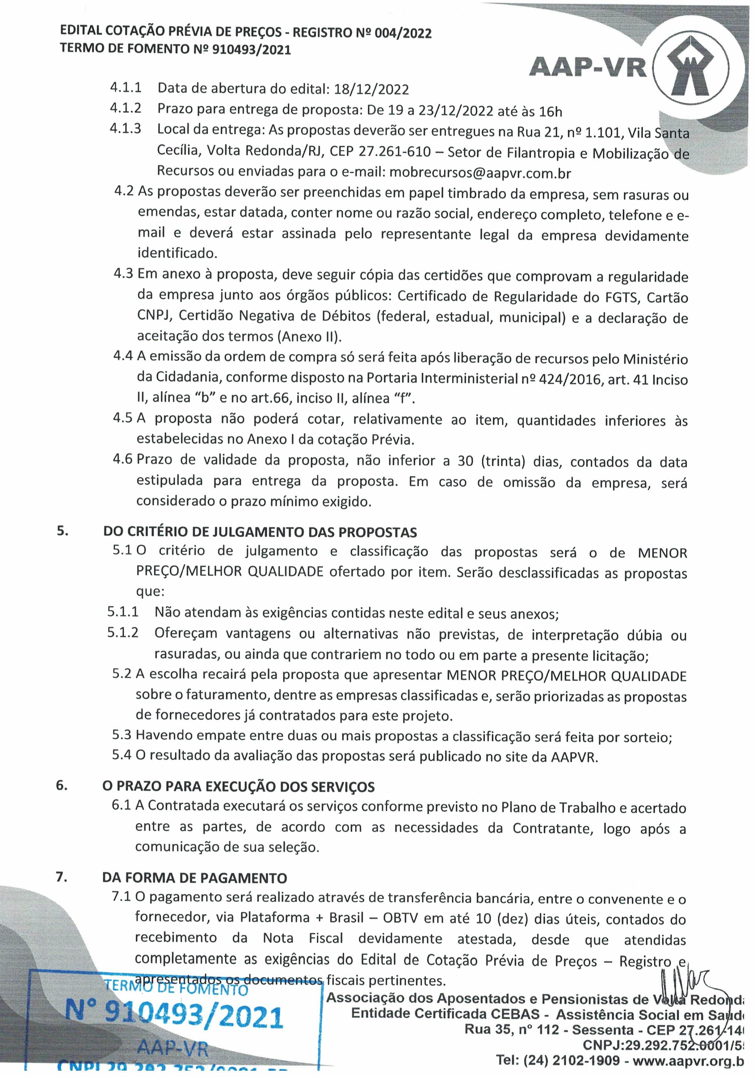 Edital Cotação Previa de Preços - Registro 004.2022
