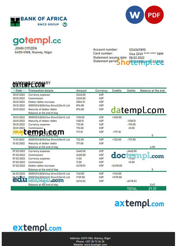 Completely editable Niger Bank of Africa bank statement template in doc format. High-quality easy fillable template.