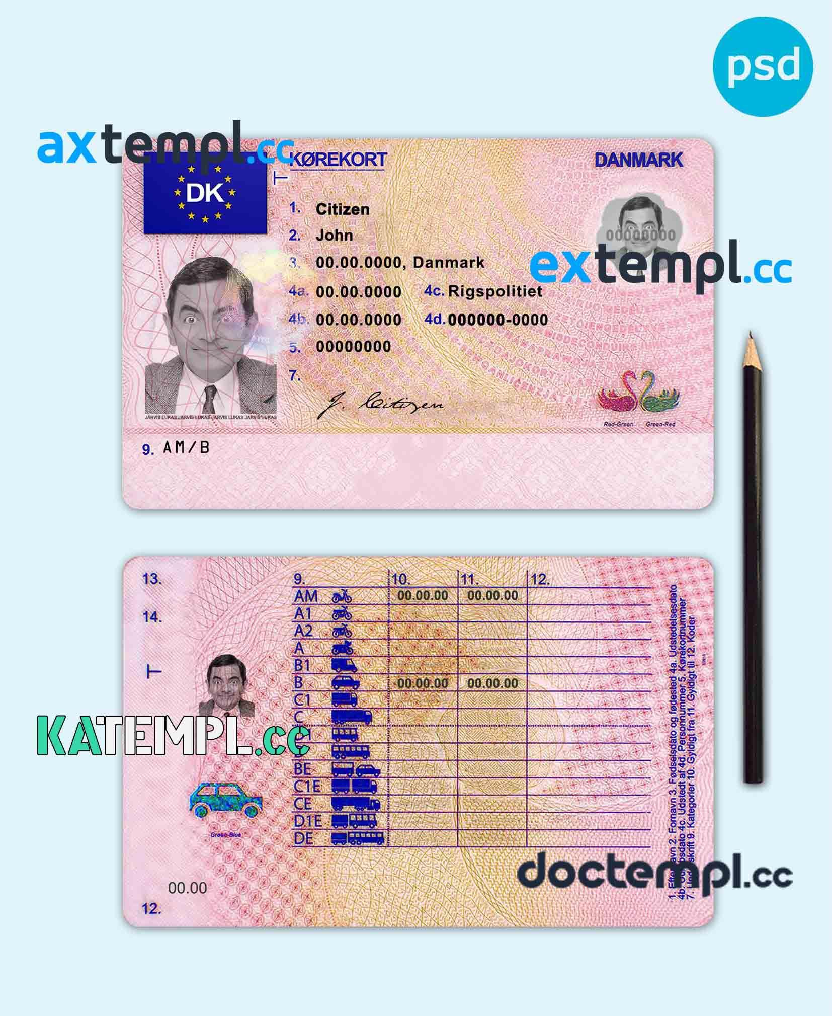 sample Denmark driving license template in PSD format, fully editable (1997 – 2013) download
