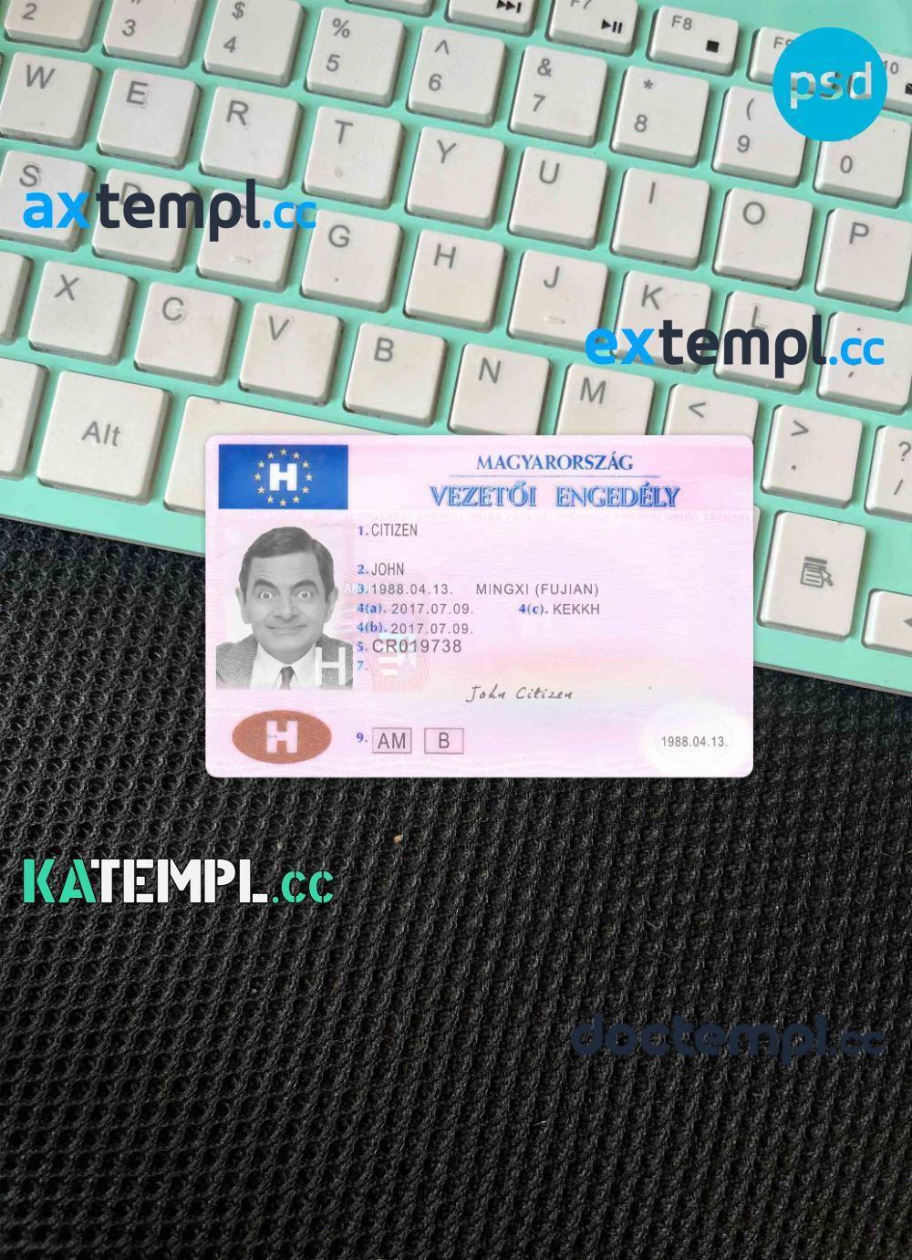 Our Hungary driver’s license template offers two options in one package: editable PSD files for both photo and scan looks.