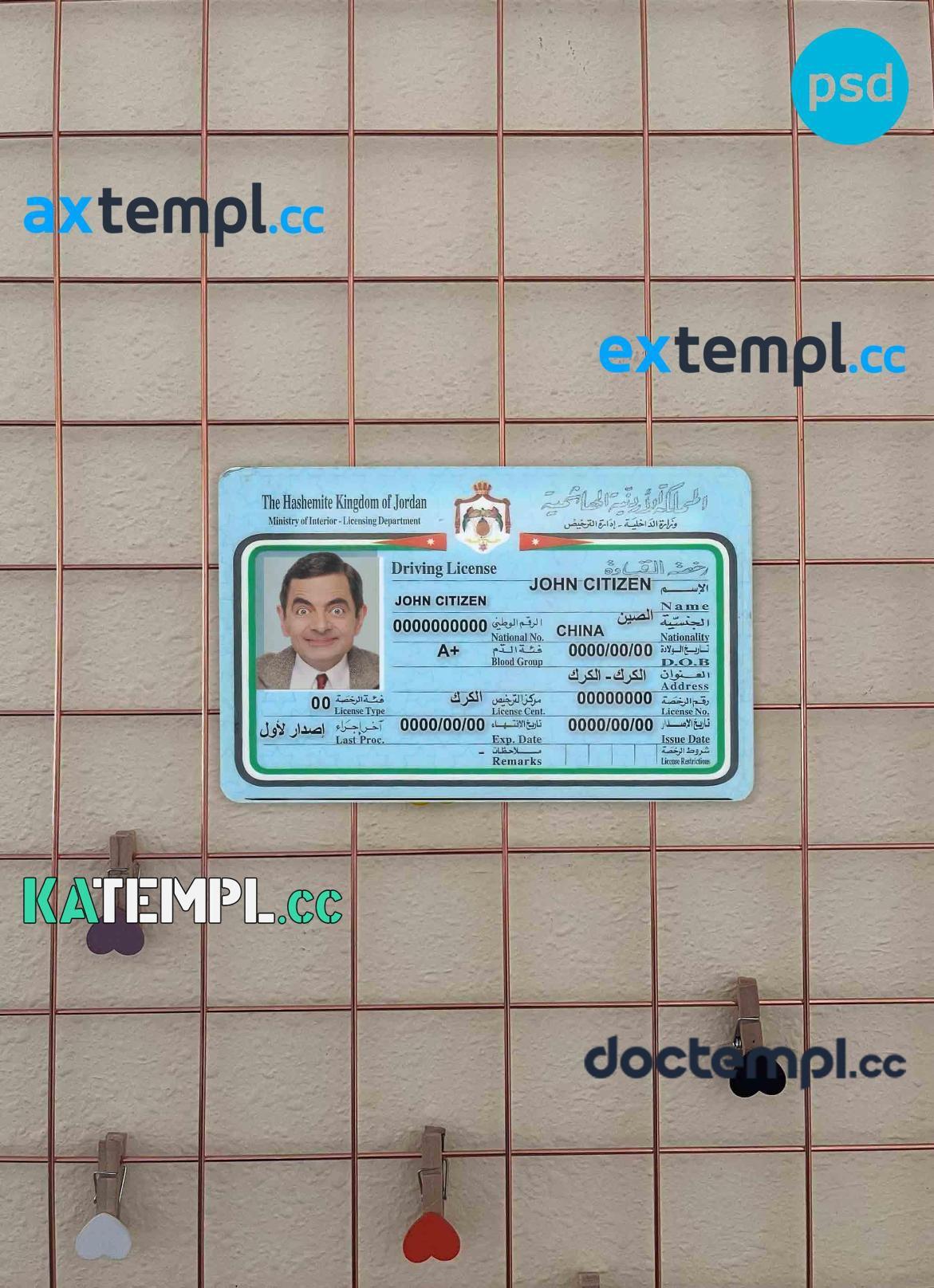 Our Jordan driver’s license template offers two options in one package: editable PSD files for both photo and scan looks. Compatible with Adobe Photoshop, this template is fully customizable, requiring only basic editing knowledge to personalize.