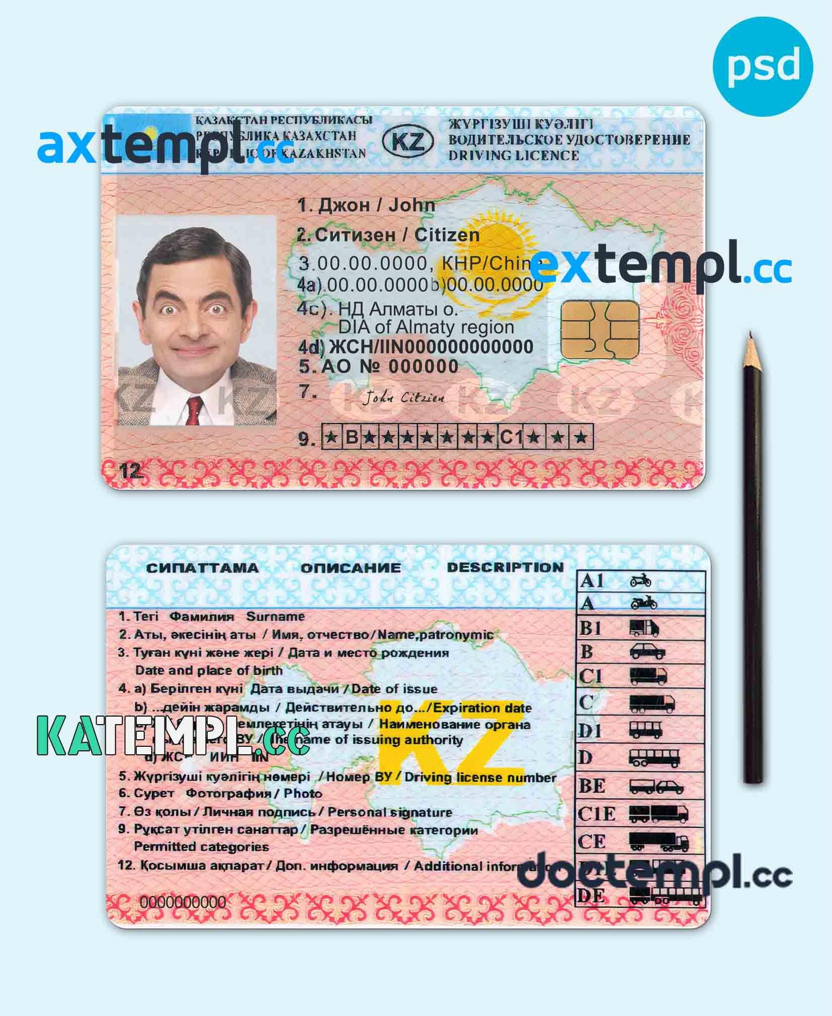 sample Kazakhstan driving license template in PSD format, fully editable download