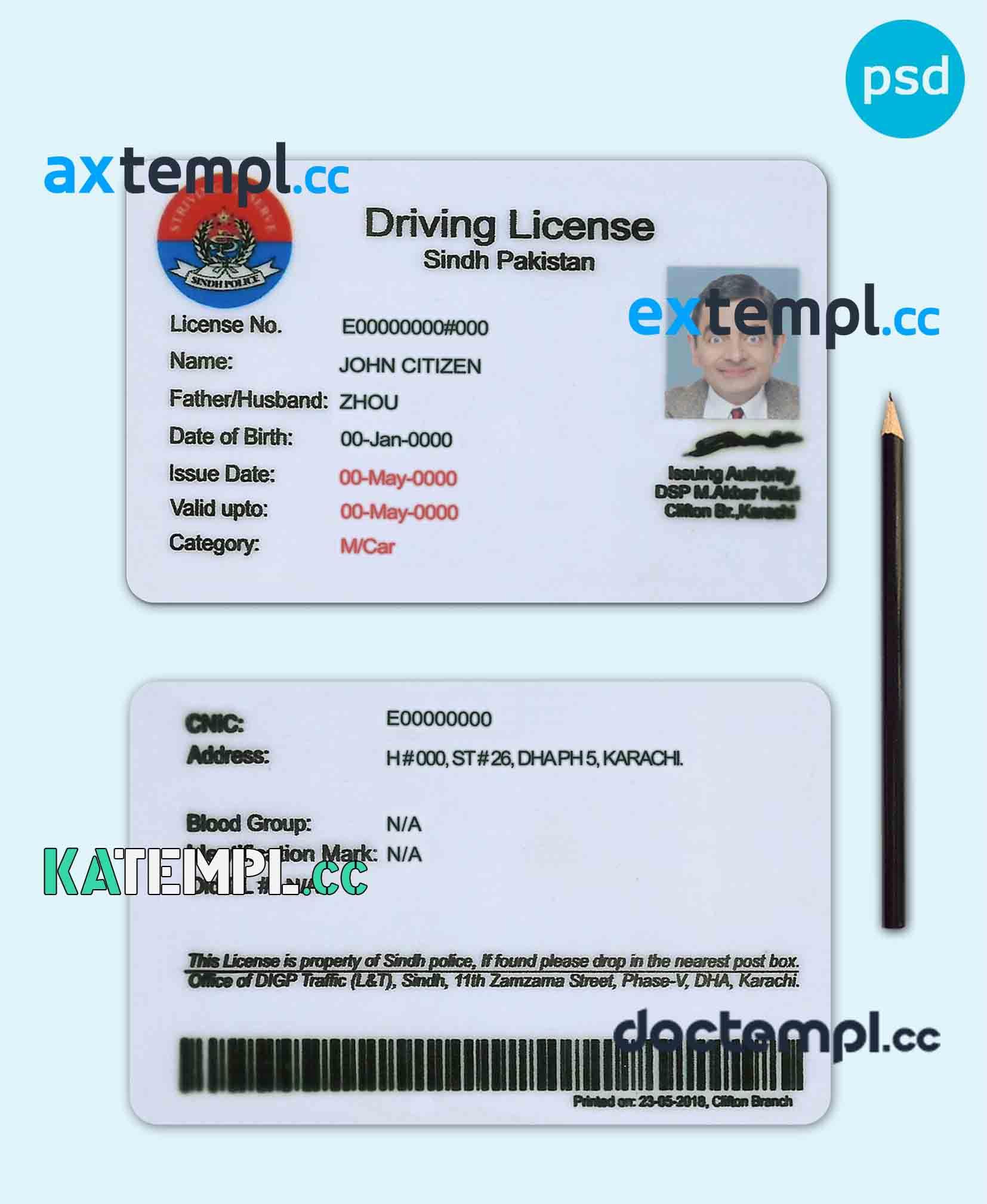 sample Pakistan Sindh province driving license PSD template, version 2 download