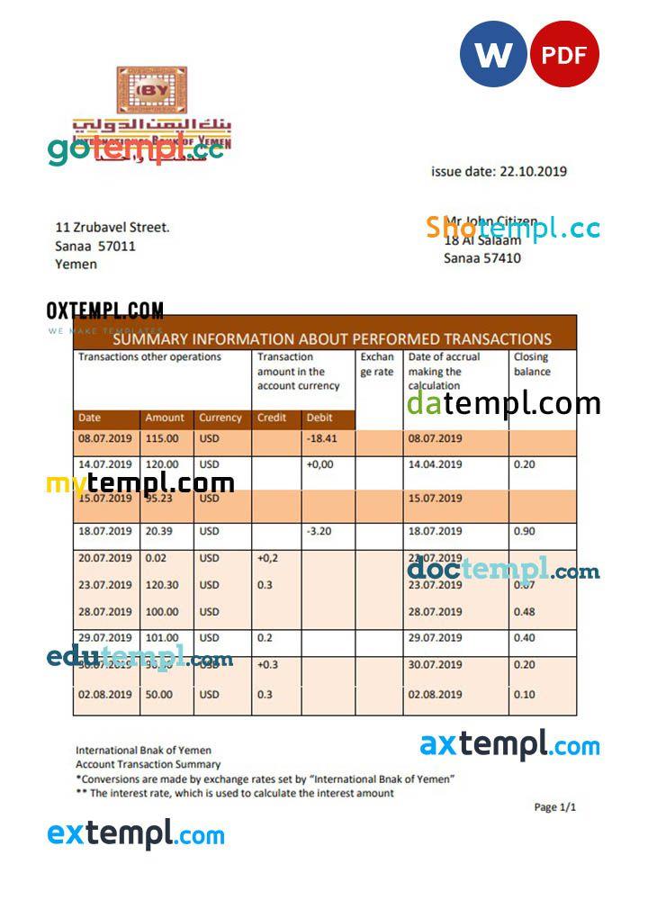 sample Yemen International bank of Yemen proof of address bank statement template in Word and PDF fo