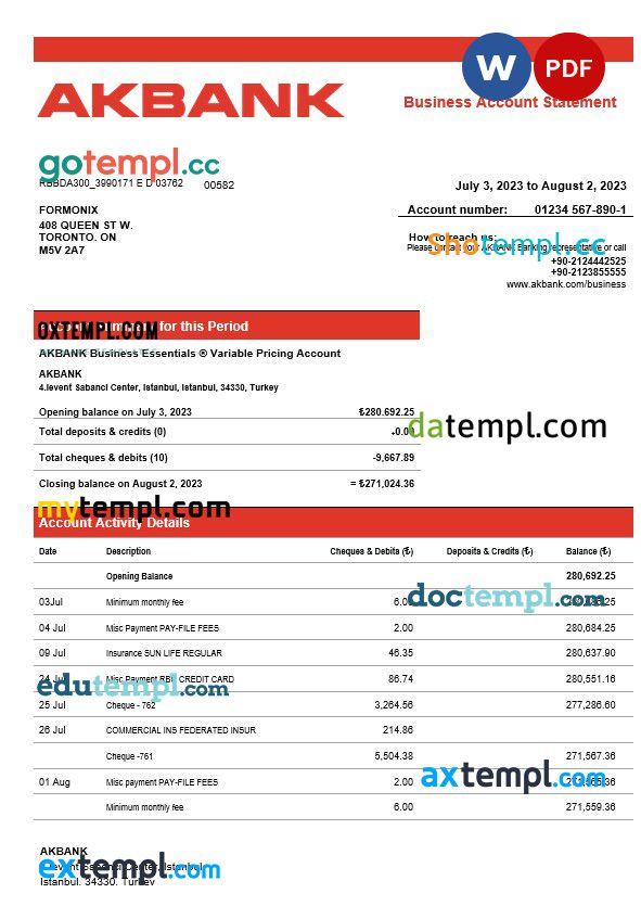 Akbank enterprise account statement Word and PDF template go