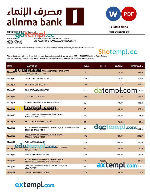 Alinma Bank company statement Word and PDF template go
