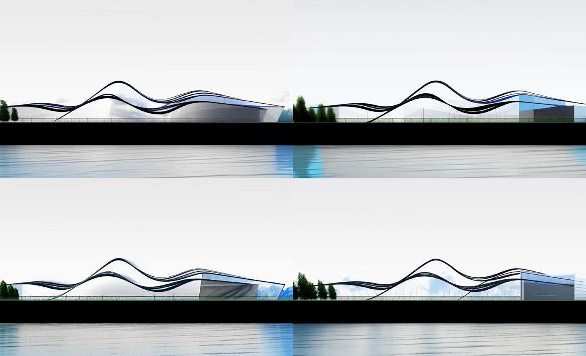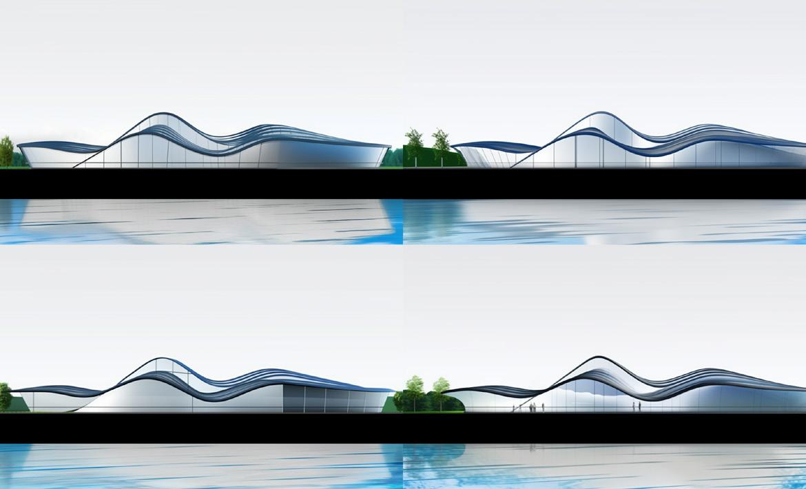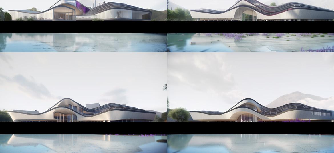 Having Midjourney interpret my sketch in its own way. Firstly, I aimed to create a new entrance concept as the primary facade by building expansion on the northeast side of the Chimei Museum. The curved roof reaches upwards, framing the dome of the existing museum building and providing shading to the surrounding area. Based on this concept, I drew this sketch and input it into Midjourney. After several remixes, it evolved into the rendered image of the main facade design