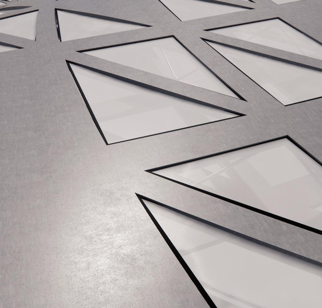 The solid portion of the roof prevents 2F special exhibition area from direct sunlight
