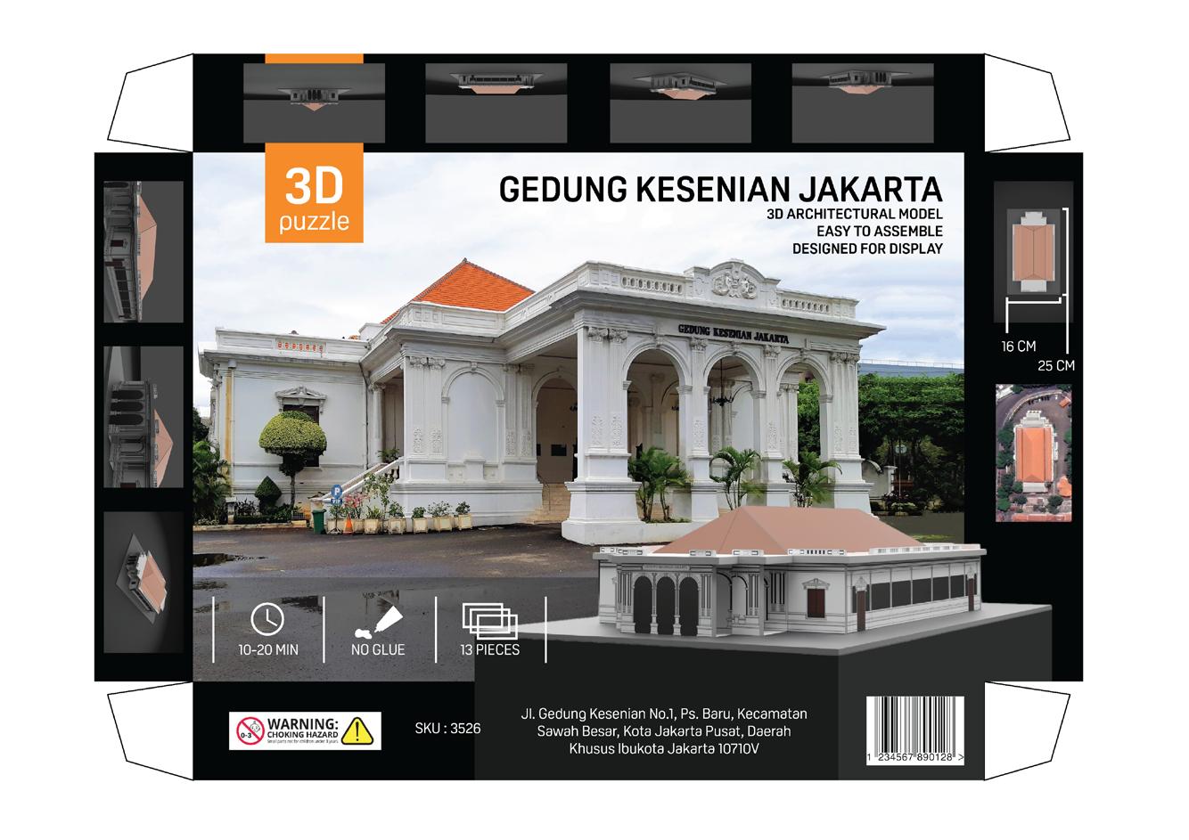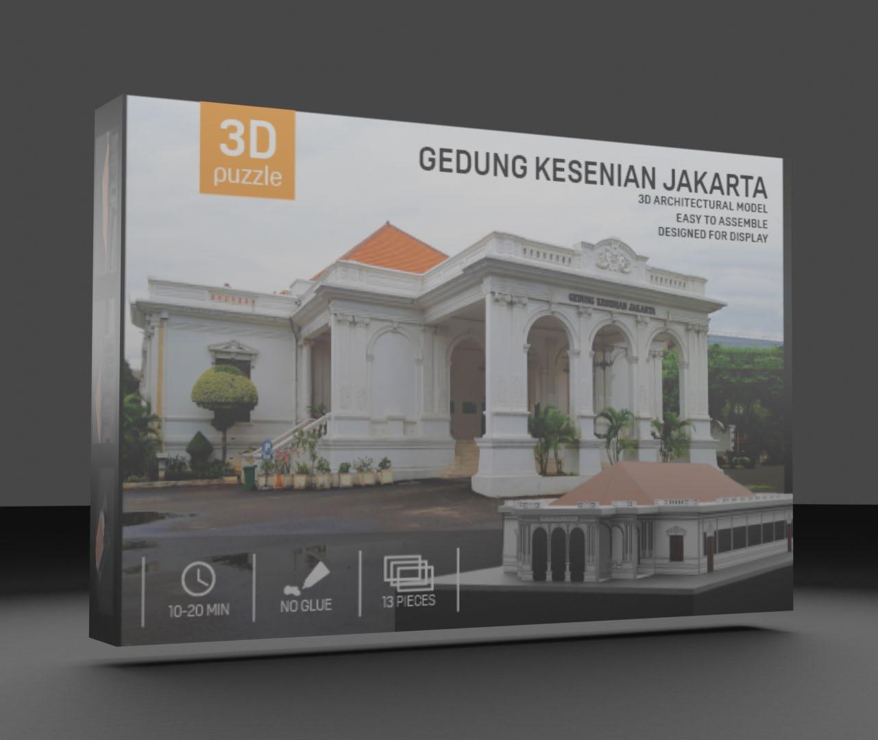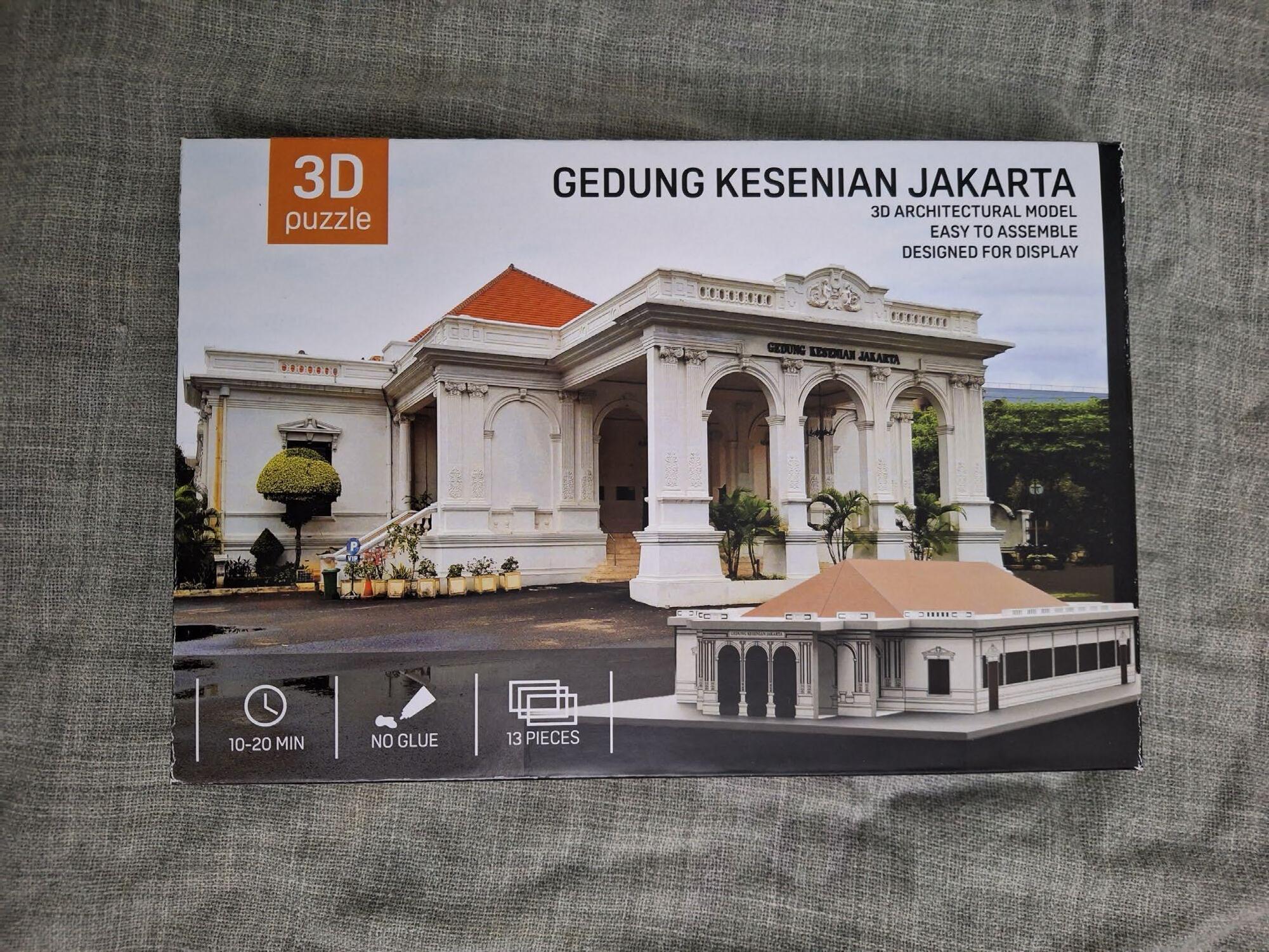 Jawaban : Gedung Kesenian Jakarta adalah salah satu ikon budaya di kota ini. Saya tertarik dengan perancangan puzzle 3D karena ingin memiliki replika miniatur gedung yang bisa saya rakit sendiri dan dipajang di rumah saya.