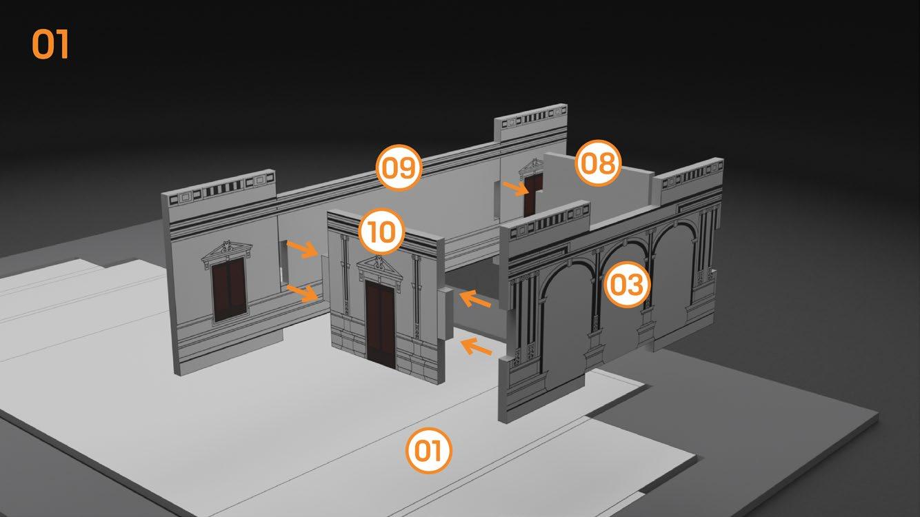 harus disusun secara akurat untuk membentuk tampilan 3D dari Gedung