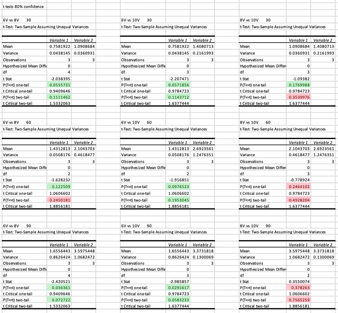 Figures 2 and 3 shown below demonstrate the statistical significance of measurements taken. For the strain data in figure 1, it has been concluded that there is no relationship between the exposure to any frequency of light and