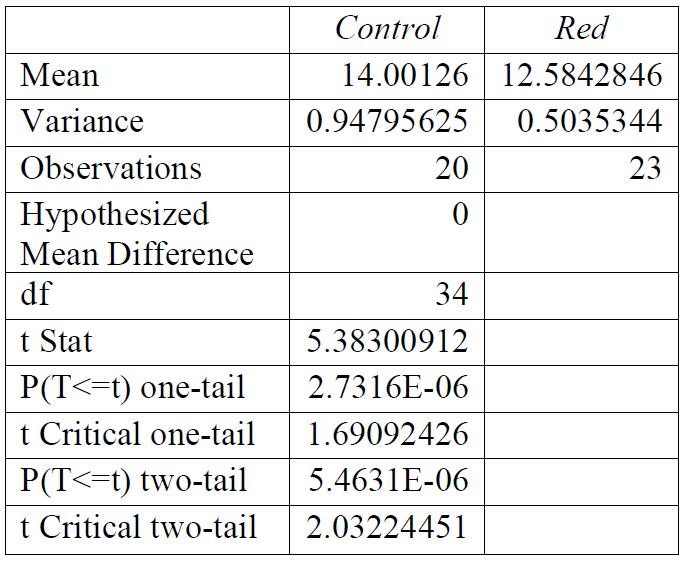 There is a large difference between the two t-tests result, with the P value of the caffeine group being significantly smaller than the antihistamine group. This is due to the time increase of conglobation which was observed, as the antihistamine group did not have as large of an increase as that of caffeine.