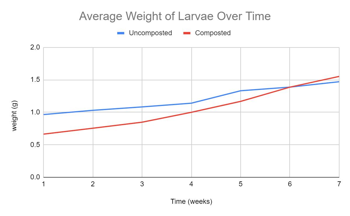Can scarab beetle larvae can be used to help in the process of composting? An increase in growth was observed in all larvae regardless of which substrate they were in. The substrate in the containers that had held larvae appeared to be broken down much finer and contained fecal pellets when compared to the containers that had not held any larvae.