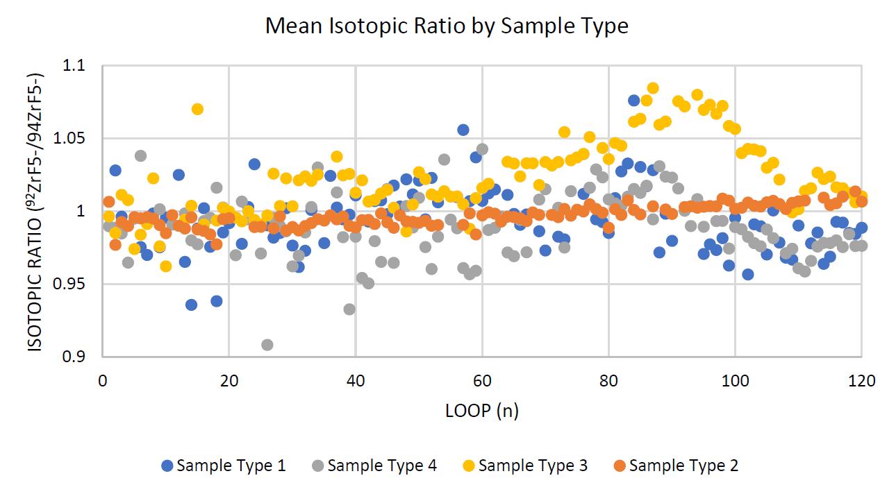This study investigates different compounds for high yield Accelerator Mass Spectrometry (AMS) of the radioisotope Zirconium-93 (93Zr) by studying temporal behaviour of ion currents of stable 92Zr and 94Zr. It was found that reparing the samples in solution with the highest ratio of lead fluoride (PbF2) to zirconium tetrafluoride (ZrF4) was the most effective combination for AMS.