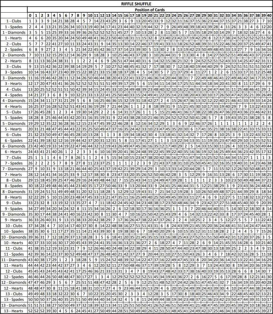 Silverman, M.P. 2019, ‘Progressive Randomisation of a Deck of Playing Cards: Experimental Tests and Statistical Analysis of the Riffle Shuffle’, Open Journal of Statistics, vol. 9, no. 2, pp. 268-298, accessed 22 January 2022 from Scientific Research Publishing, ISSN; 2161-7198, <https://doi.org/10.4236/ojs.2019.92020>.