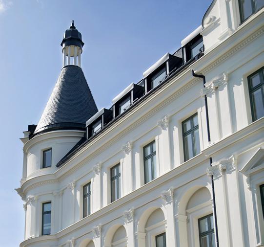 Beskrivning: Inåtgående fönster med specialritad profil efter godkännande av stadsantikvarie och SBK. Pivotfönster för mycket stora perspektivfönster. Akustikglas med 43dB på total konstruktion. Brandskyddade fönster.
